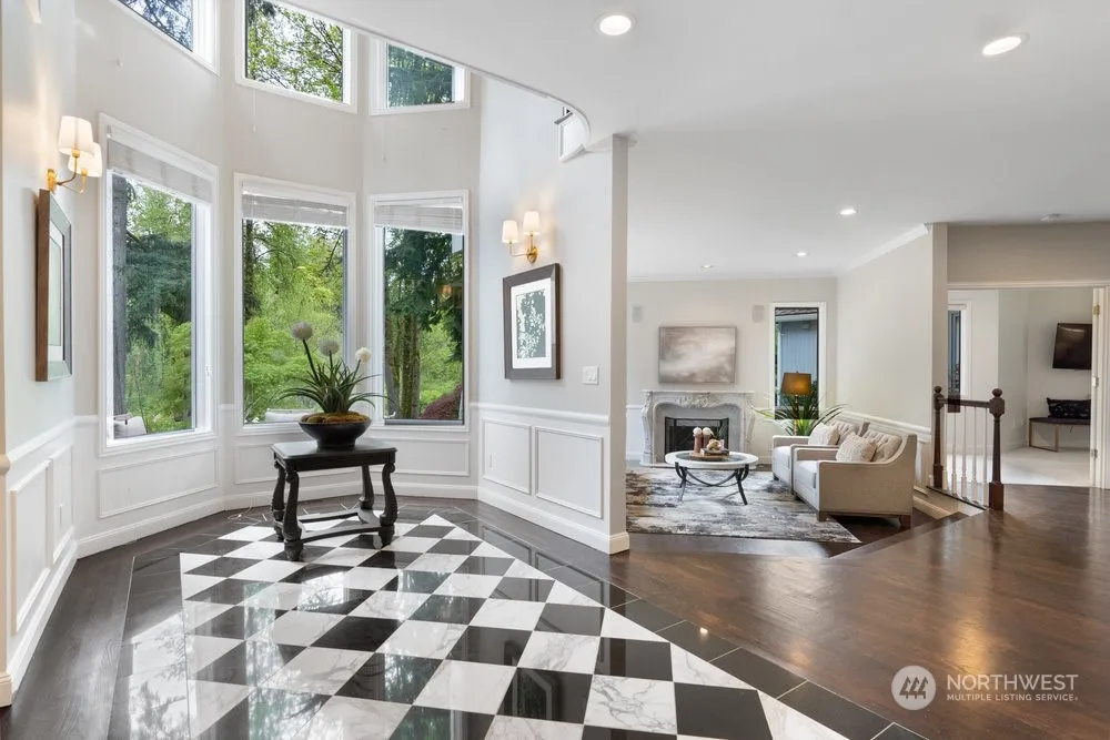Exceptional custom built lakefront home in sought after Lake of the Woods. Architectural details t/o idyllically resting on 1.19 acres in a quiet cul-de-sac w/200+- ft of lakefront bordering the beaver dam & native growth greenbelt. Beautiful finish details, extensive brick front & castle stone entry, front courtyard w/large stone water feature surrounded by seasonal plantings. Main floor primary suite w/new spacious bathroom, heated designer tiled floors, large tiled shower, new quartz vanity & 2 walk-in closets. Kitchen w/quartz island, Viking stove, Sub Zero fridge. Voluminous great room w/French doors to Ipae deck, yard & lake. New en-suite bath in 4th bedroom, 2 others share a new Jack & Jill bathroom. AC, auto generator, 50 yr roof.