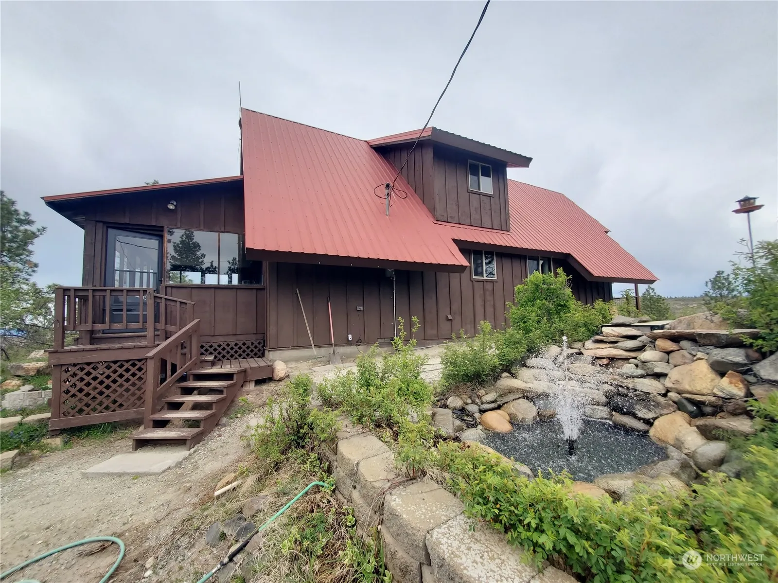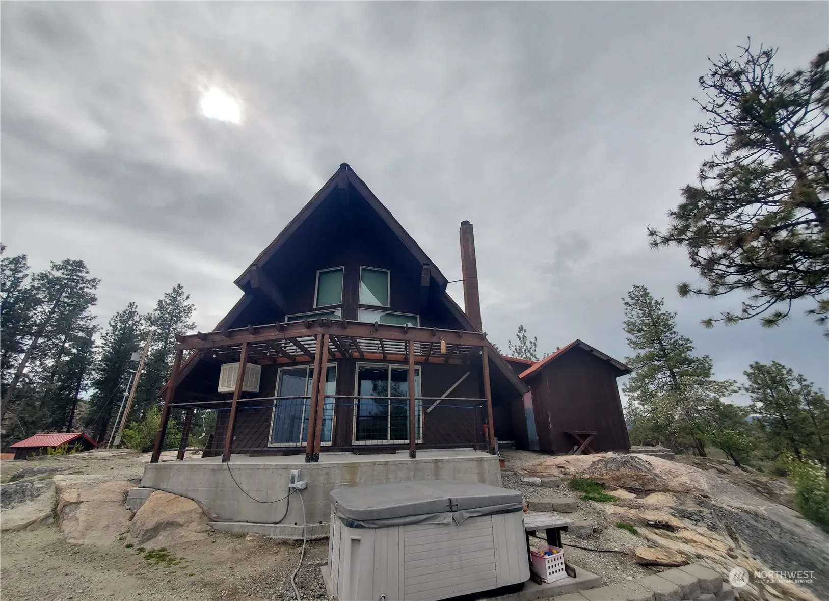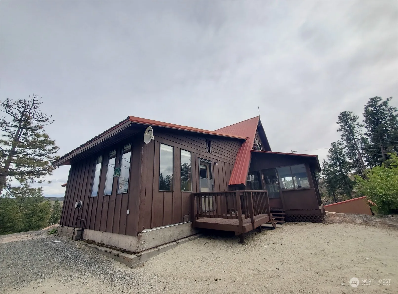 TOP OF THE WORLD VIEWS from this 2+ bdrm/2 fuil ba Okanogan Home. Private & secluded on 20 acres w/seasonal pond, situated only 7+/- miles from town. Living room w/brand new wd stove & slider to front deck; kitchen w/all appliances; huge family rm/possible 3rd bdrm w/access to back deck; utility rm with W/D, wtr sftner; enclosed entry porch; upstairs loft/den area + 2nd bedrm & bath; vaulted ceilings; elect + propane heat. Sep shop/garage w/220 pwr & wd stove, 3 bay equipment shed, wood shed, garden shed, greenhouse. 30 amp RV hkup, private well, ATV storage shed, RV storage shed w/2nd shop. Garden area, fire-safe/maintained property w/some timber. Abundant wildlife and 360 degree views. $414,900 H-3236/MLS2230750