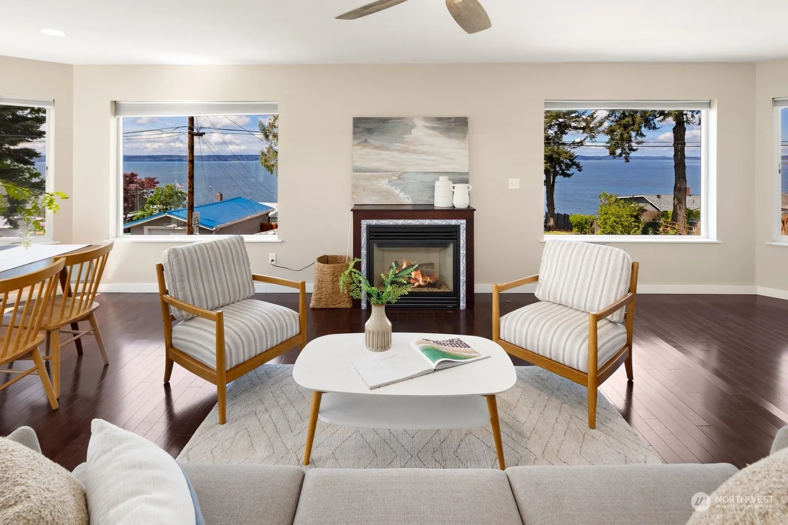 Extraordinary Puget Sound & Olympic Mountain views from this well-maintained Warm Beach home. Enjoy beautiful sunsets, and watch wildlife like eagles, herons, whales, & deer. The open kitchen is ideal for entertaining and features a large island with a propane cooktop. New dishwasher, loads of cabinet space, pantry and deck off the great room. Gas fireplace comes on with a flip of a switch to create a cozy atmosphere. Spacious top-floor primary suite has vaulted ceilings w/french doors leading to a private deck w/ hot tub. Primary bath with large shower. Double garage, great corner lot. Beautiful, well established neighborhood close to restaurants, shops, schools, public transportation, and I-5. Perfect for full time or weekend getaway!