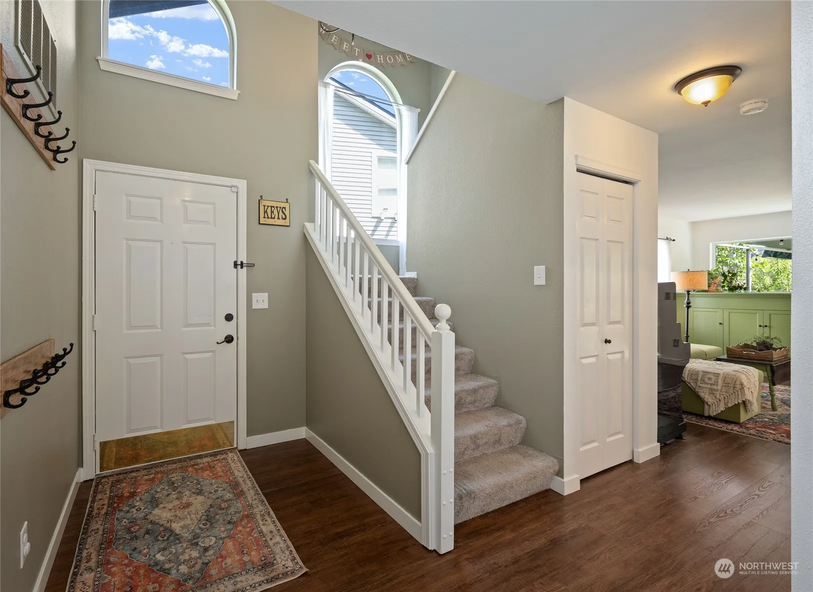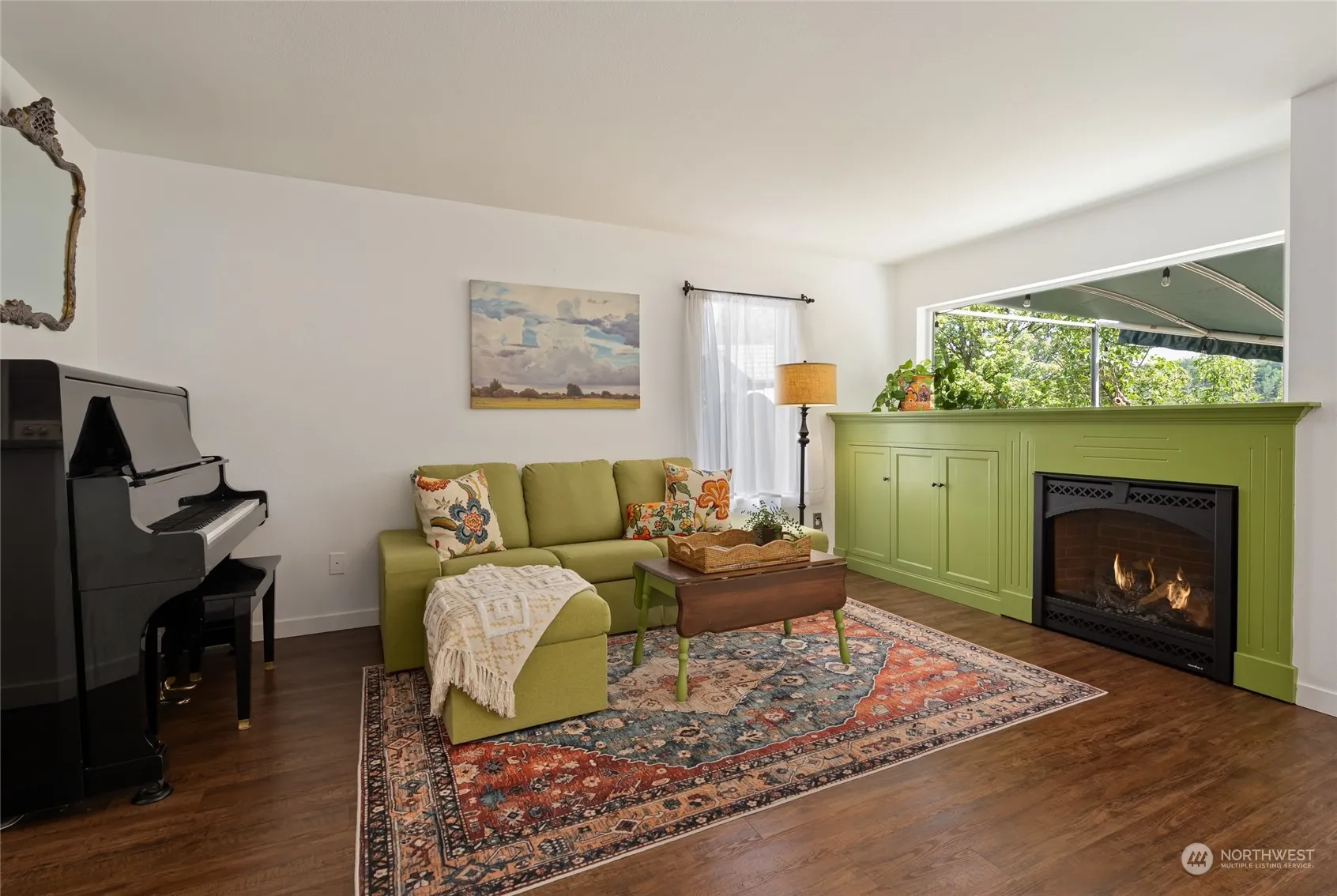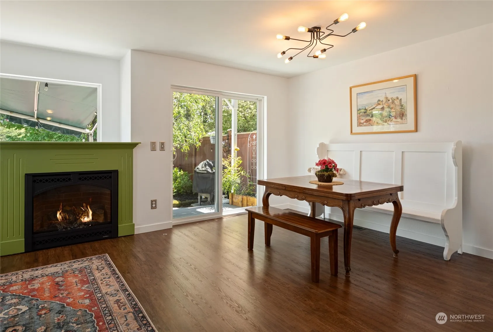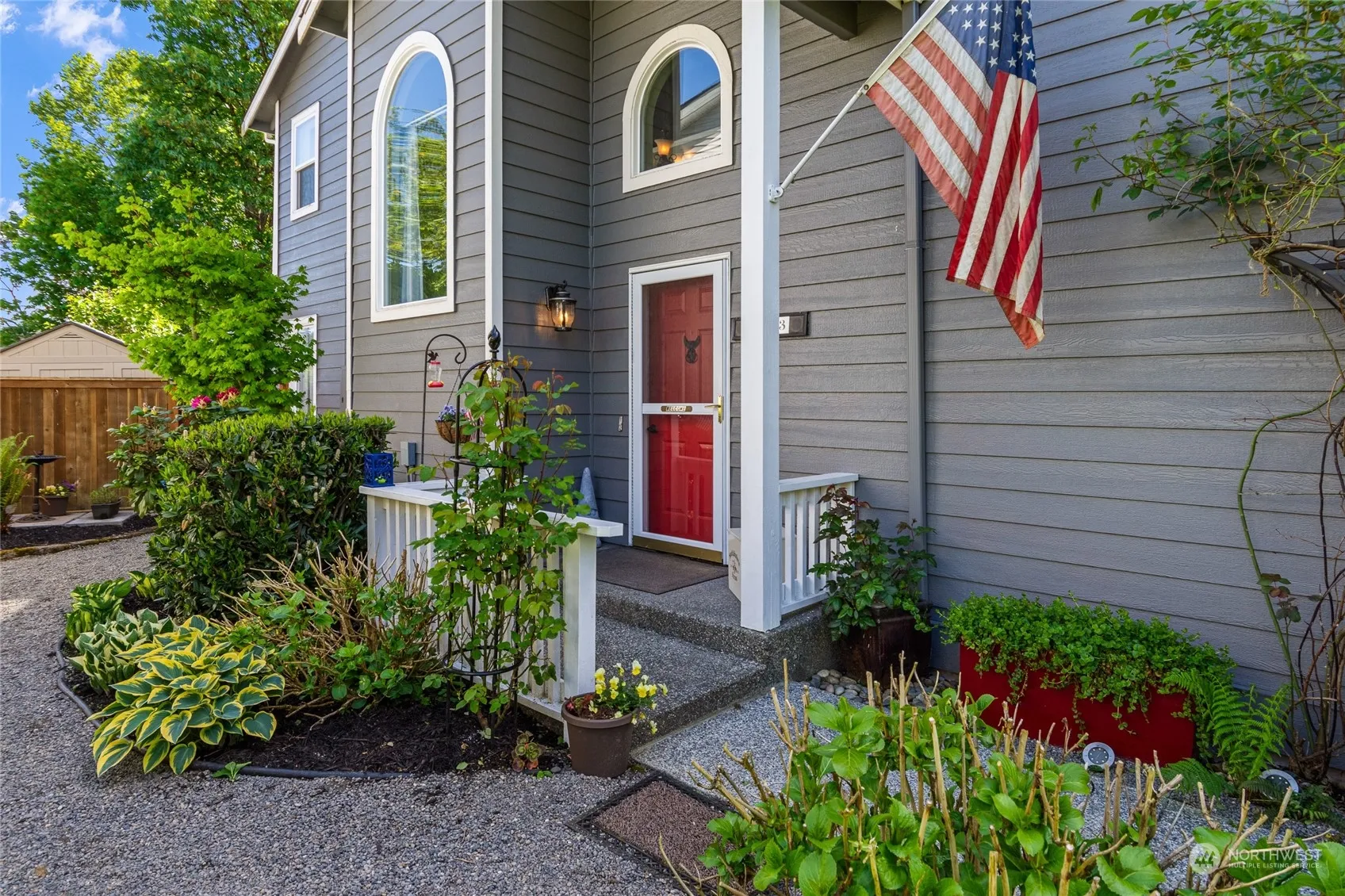 TUCKED AWAY YET IN THE HEART OF DOWNTOWN SNOHOMISH perched above the PILCHUCK RIVER~sits this adorable HOME. Downstairs ~ A charming living room with gas fireplace and adjoining dining space. Updated Kitchen with granite counters. Newer flooring. Half bath downstairs. Upstairs~Primary Suite with amazing flower farm and pastoral view. Vaulted ceilings and En Suite Bath. Plenty of closet room! Deck off Primary for morning coffee! Two ample sized bedrooms & hall full bath. Upstairs laundry. Heat pump~ Heating & A/C! Two car garage. Fully fence backyard with English Style low maintenance garden. Awning over patio for covered entertaining. Quiet development. Minutes away~ Centennial Trail, Averill Park, Pool, restaurants & shops. EASY LIVING!