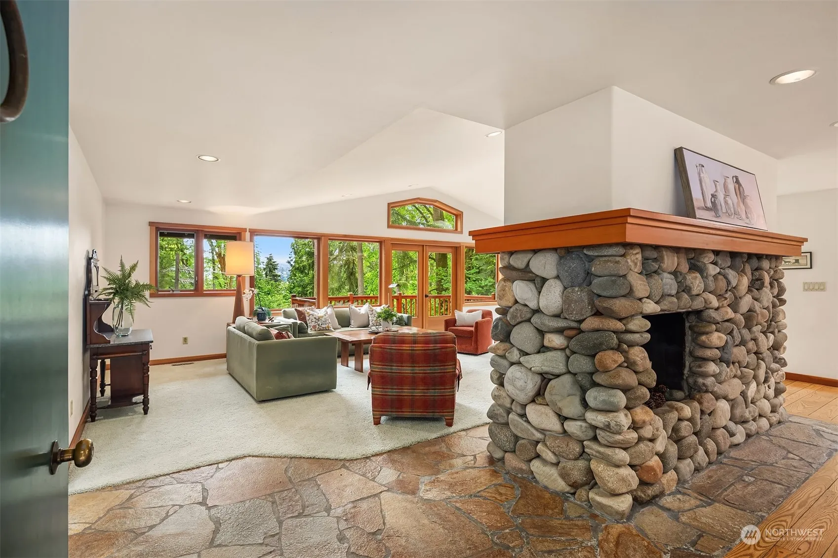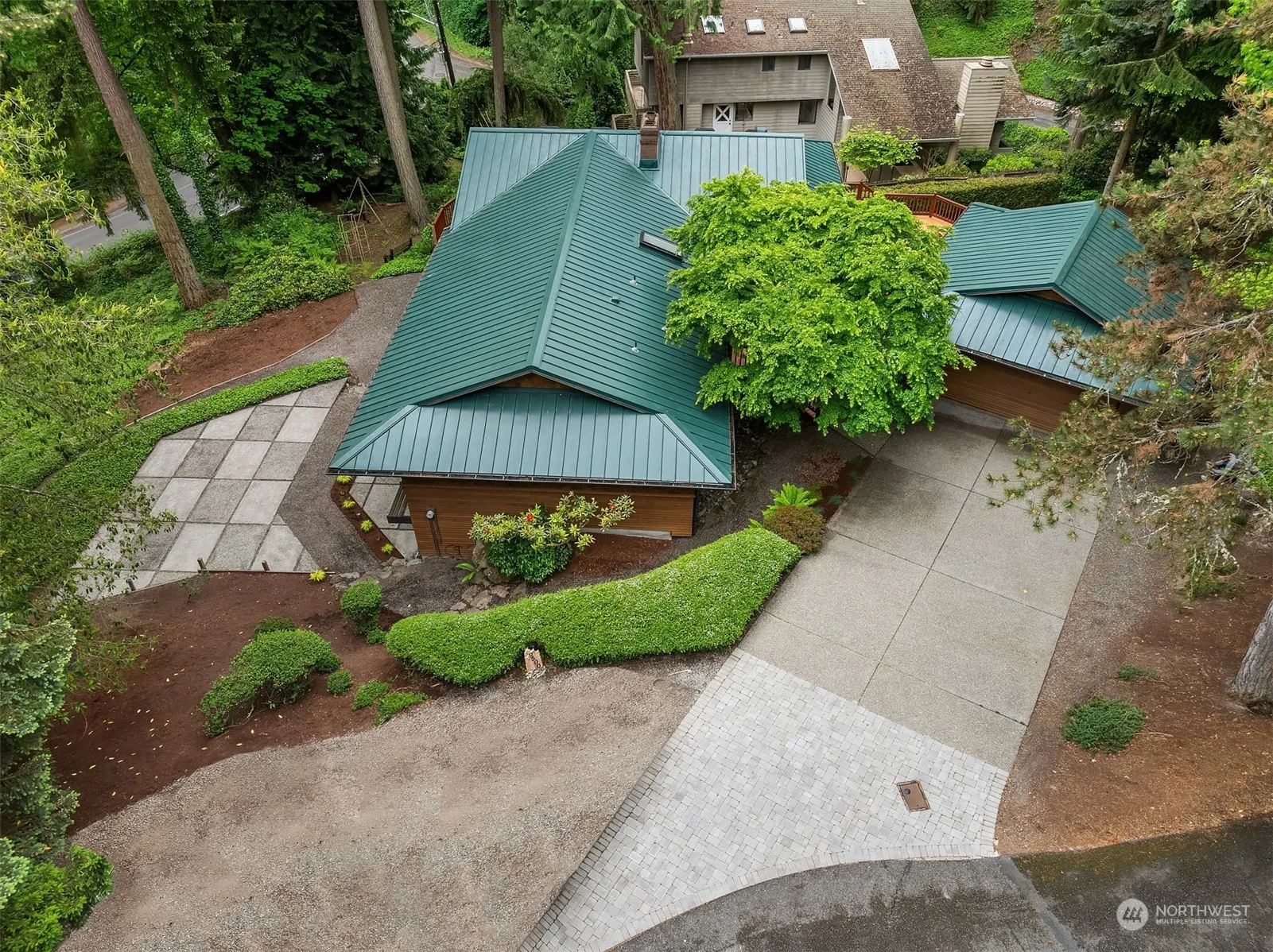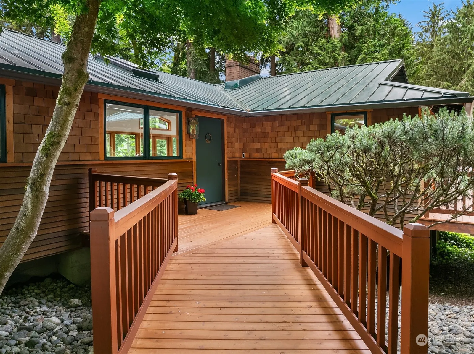 NW Contemporary in a lush Pacific NW setting. Enjoy views of the trees, lake & Mountains. A private Sanctuary, yet so close to downtown Seattle & Bellevue. Walls of windows flood this home with natural light. Floor-to-ceiling fireplace. Wonderful kitchen opens to cozy family room. Primary Suite is spacious, on first level, and full of light. Three bedrooms, laundry room, and rec room on lower level. Separate work room for projects, provides lots of options. Large flat patio on lower Eastside of home. Two large cedar decks, one in front (west side) and one off Din/Liv room on East side. Move-in ready.