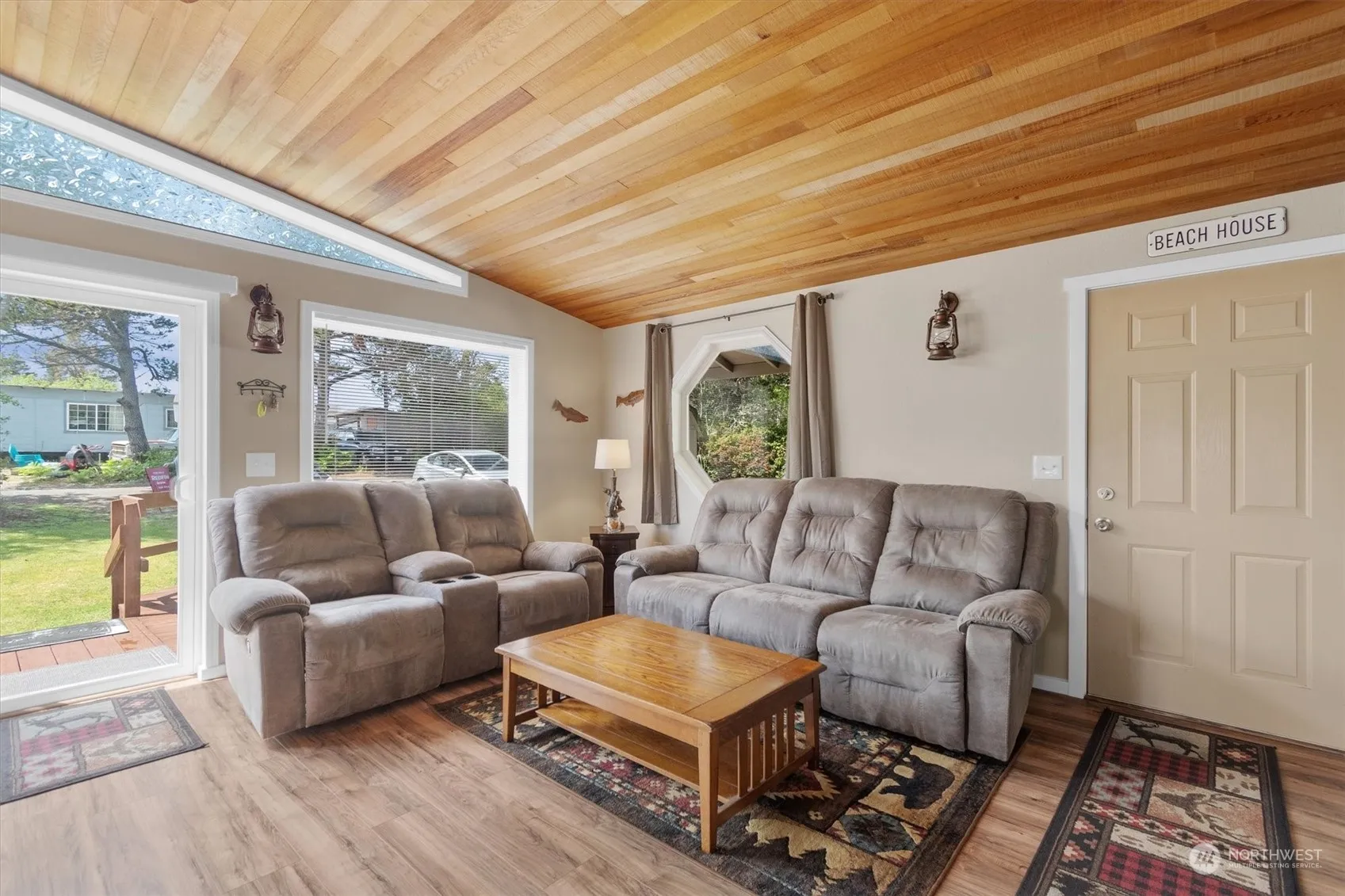 Price improvement on this gem, you will not be disappointed! Nestled up to the greenbelt, this 1991 updated built beach cabin awaits new owners! Home has a entertaining size cedar deck, free standing pellet stove to warm you after a day at the beach. Custom kitchen cabinetry with tons of storage. Two spacious bedrooms and 1.5 bathrooms. There are 3 RV hookups featuring power and water, plus a RV Dump. Fire-pit for roasting marshmallows, level lot with mature landscape. Lots of upgrades throughout! Call for a tour today!