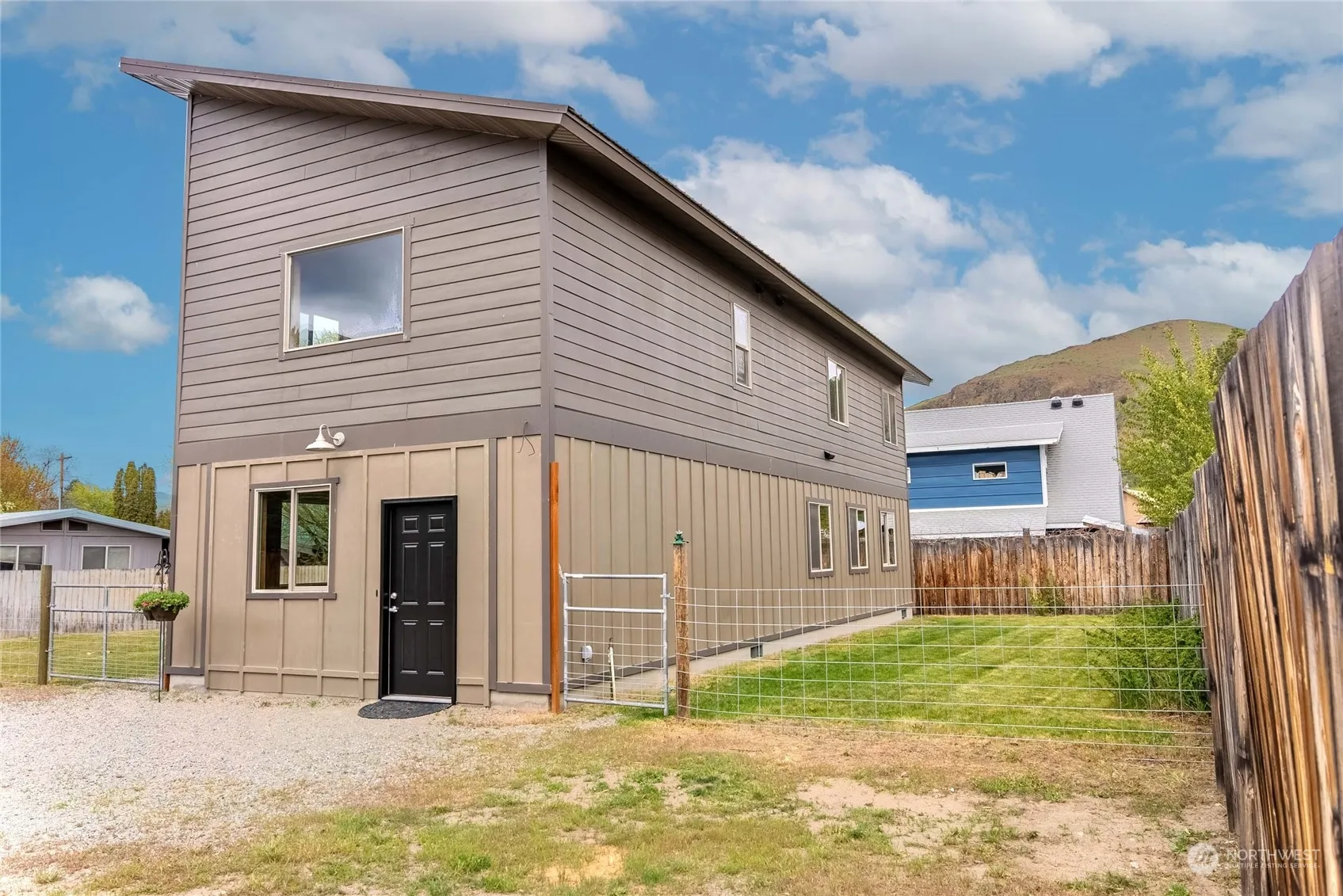 In-Town Convenience with Modern Flair. Custom-built 4-year-old 3-bed 2½ bath 2-story home on an oversized lot at the end of a private road with town water/sewer and a fenced yard with MVID irrigation. Two blocks to river access and EZ walk to downtown. Roomy home is designed with efficiency and minimal maintenance in mind and boasts many modern quality features, including Luxury Vinyl Plank and Porcelain Tile flooring coverings, Porcelain Tile and Quartz Countertops, Grohe Thermostatic valves, Natural Hickory cabinets, board-and-batten cement siding, and extra-deep Stainless steel Kitchen sink. Bedrooms and full baths are on the second floor. The unique main entry doorway opens to the large, mostly finished, mudroom/foyer/bonus room.