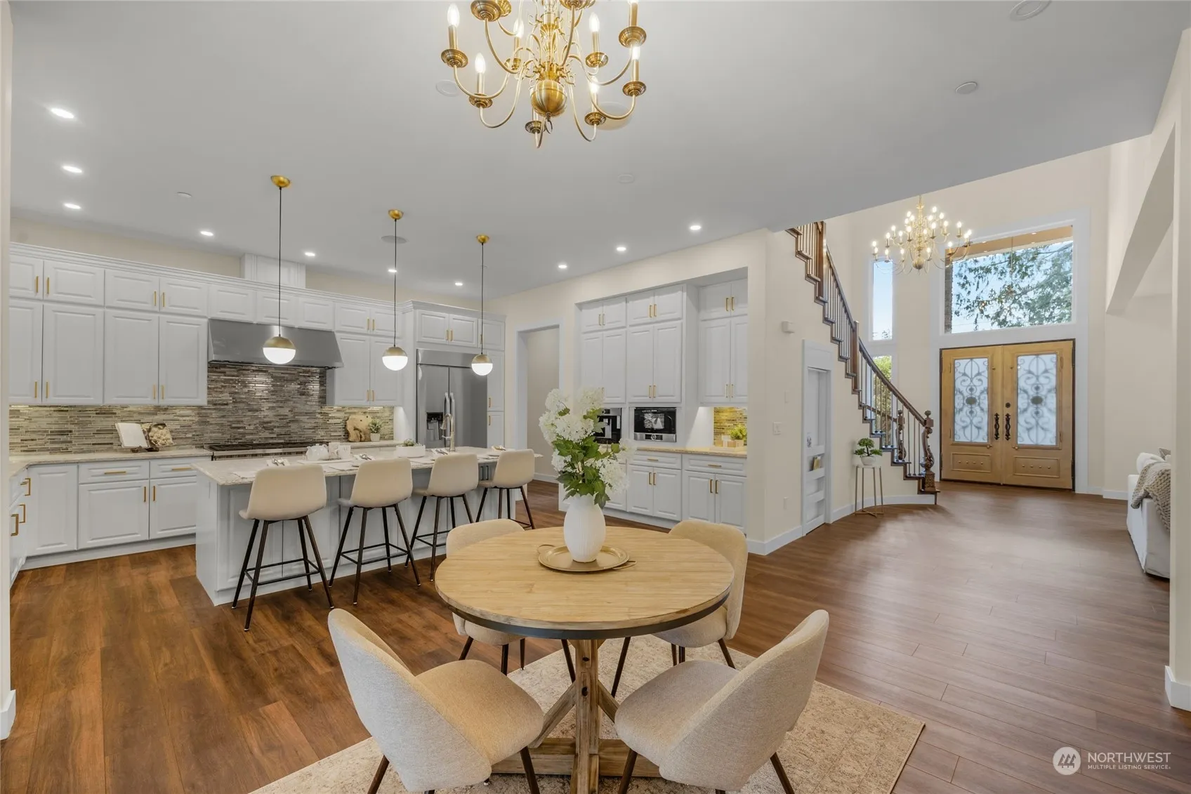 Kill two birds with one stone-2 homes in 1 sale! This gated luxury new build home in the prestigious Pine Lake area of Sammamish also offers a fully-fenced detached, legal ADU w/ income producing potential. Embodying modern elegance and versatility, the main house features spacious living areas flooded w/natural light, high-end finishes, & designer touches throughout. The gourmet kitchen is a masterpiece, w/top-of-the-line appliances & ample counter space. Not just the primary, but every room has its own lavish ensuite bathroom & walk-in closet providing ultimate comfort & convenience. Step outside to a covered deck w/swim spa, hot tub, outdoor shower, built-in BBQ, & gas fireplace perfect for year-round entertaining. No detail overlooked!