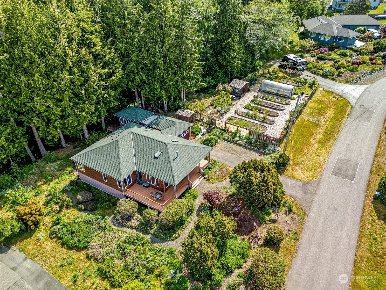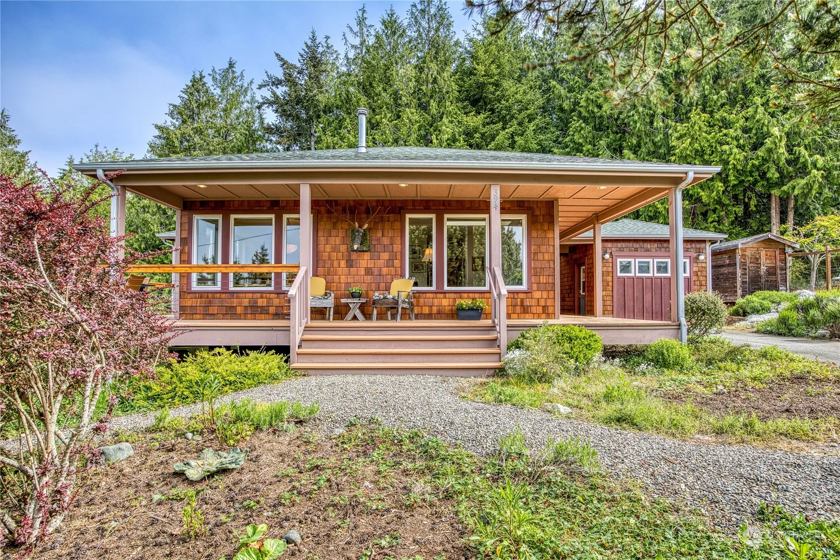 Immerse yourself in tranquility in this picturesque Cape George Colony property. The offering includes a delightful craftsman home with water views, versatile studio AND a separate view lot currently flourishing as a gardener’s sanctuary. The home is filled with abundant character & charm, with a window-lined great room & open kitchen. Thoughtful design with 2 bedrooms, 2 baths & an office optimizes livability. The wrap-around porch invites lingering on a sunny day or star-filled night. 501 sq ft studio with two rooms, kitchenette, 3/4 bath + private deck provides myriad creative & professional options. This is a place where people, pets & plants can happily thrive. All this plus extensive Cape George amenities & friendly neighborhood.