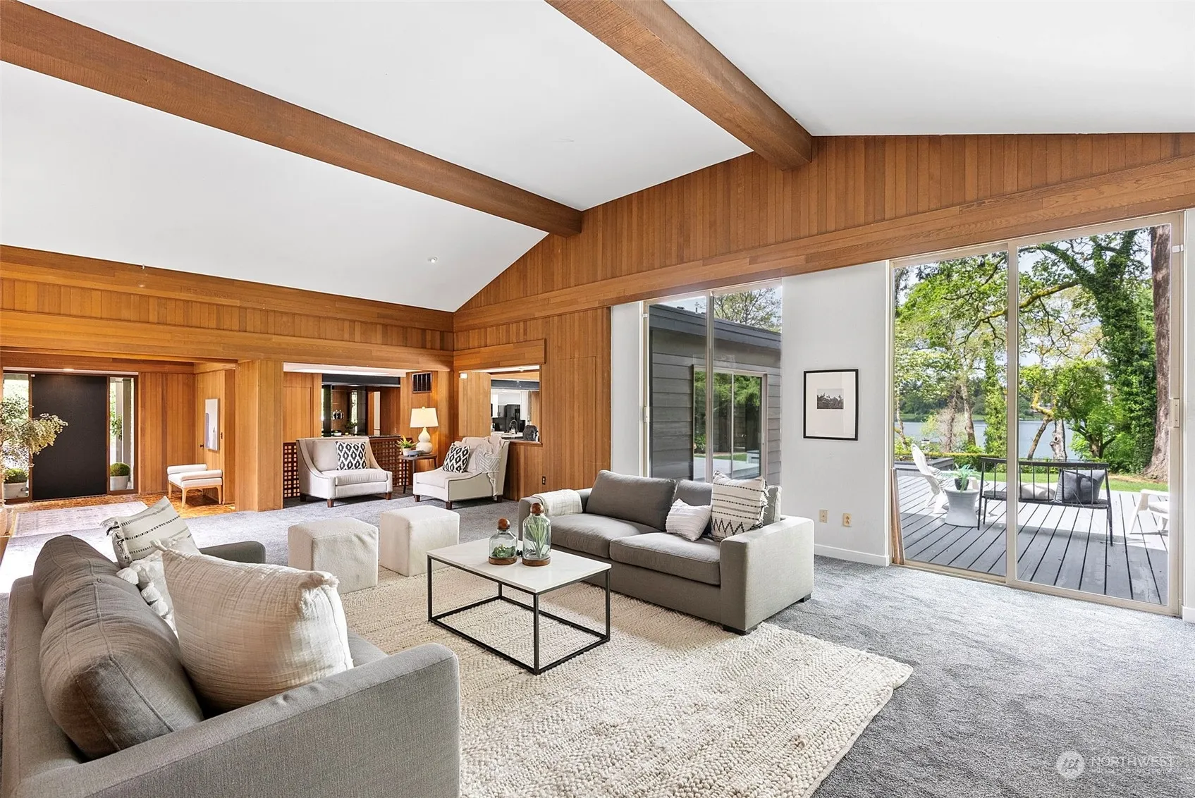 This elegant Gravelly Lake view property is set on just under a half acre of park-like grounds. This 6 bed, 4 bath home offers plenty of space with over 4,300 square feet of indoor space and an expansive deck complete with pool and spa. Kitchen has been updated with new cabinets and counters. Formal living room with show-stopping floor to ceiling windows, vaulted ceilings, fireplace, and new carpet. Formal dining room with floor to ceiling windows and wet bar for entertaining. Primary bedroom upstairs with great views, a private balcony, en suite bath and walk-in closet. Family room off the kitchen with one of three fireplaces. Fenced backyard with large lawn. Two car garage as well as additional boat or small RV parking space. A must-see!