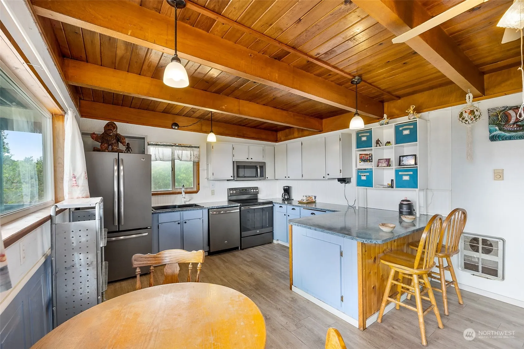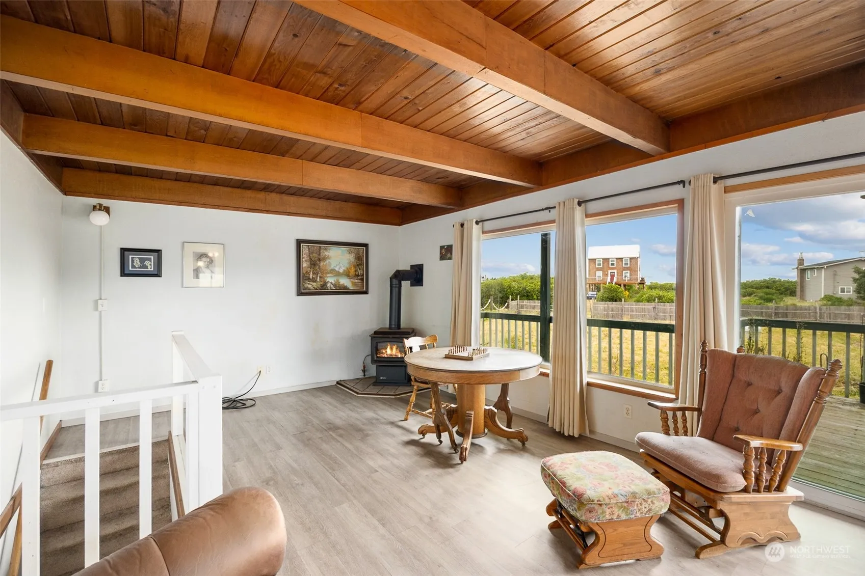 Still dreaming of living at the beach? Just a short walk to the shores of the Pacific Ocean where you can fly a kite and stay long enough to enjoy the sunset and listen to the soothing waves. Roll up your sleeves, a little love will go a long way to make this your dream beach house. Sweeping windows overlook the extensive covered deck, original, stately tongue & groove ceiling, laminate floors on the entire second level and majority of the lower level. Light and bright kitchen includes stainless steel appliances.