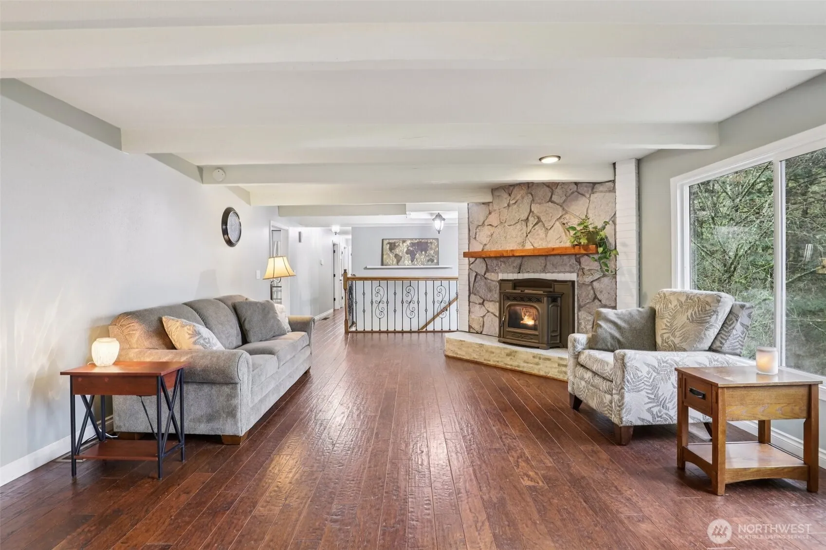 Territorial views. Covered front porch. Living rm stone surround pellet stove, French doors. Eat bar SS kitchen, pot filler, granite, pantry storage. Dining w/board & batten wainscoting. Main-level vaulted primary suite, double closets, dual-sink tiled vanity, shower w/dual shower heads. 2 addtl bdrms, full bath on main. Lower level: 2 more bdrms, laundry, storage rm, full bath. Upper-level bonus rm pellet stove, wet bar, slider to balcony, ceiling fan, sloped ceiling. Engineered hrdwd, carpet, vinyl. Starlink internet. Wrap-around deck, patio, fire pit. 2-car garage, fireplace, built-ins. 5.09 acres. 3 cross-fenced gated pastures, outbuildings. Permalock metal roof. RV parking. Mortgage savings may be available for buyers of this listing.