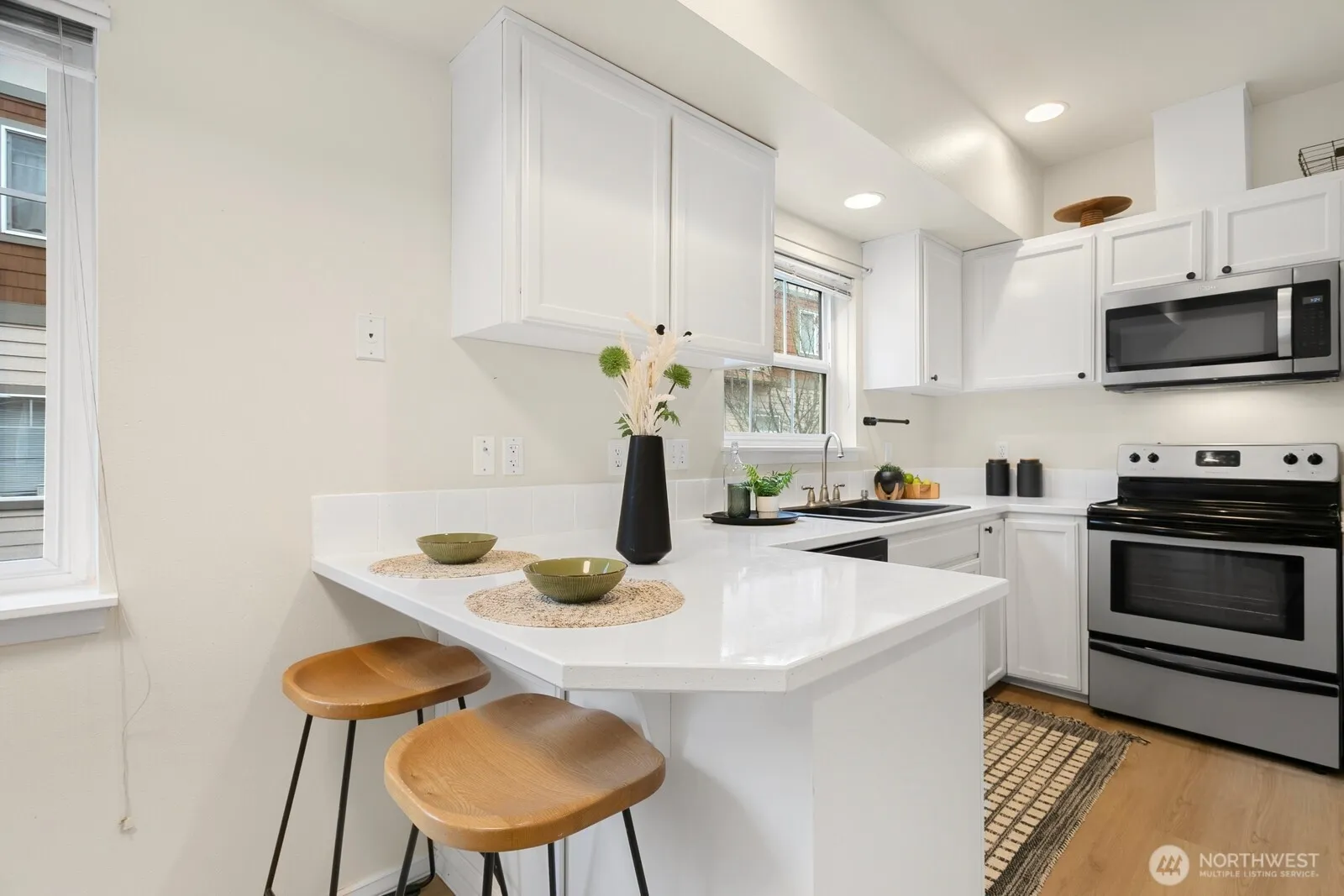 Welcome to Fairway Ridge! Excellent & updated, you will love this End-Unit condo. Living more like a single-family home, you can step into homeownership in a quiet small community, with an unbeatable location. Natural light pours in through large picture windows to accent new flooring, new lighting, cozy gas fireplace, & private deck. Large living & dining area on main, with kitchen & powder room. Both bedrooms up with their own full baths, & generous closet space. Move in with peace of mind, building updates include: new garage door, new siding, newer roof & freshly painted/updated exterior. Private 2-car garage, with plenty of storage space. Conveniently close to new light rail station, parks, dining, Edmonds CC, & Lynwood Golf Course.