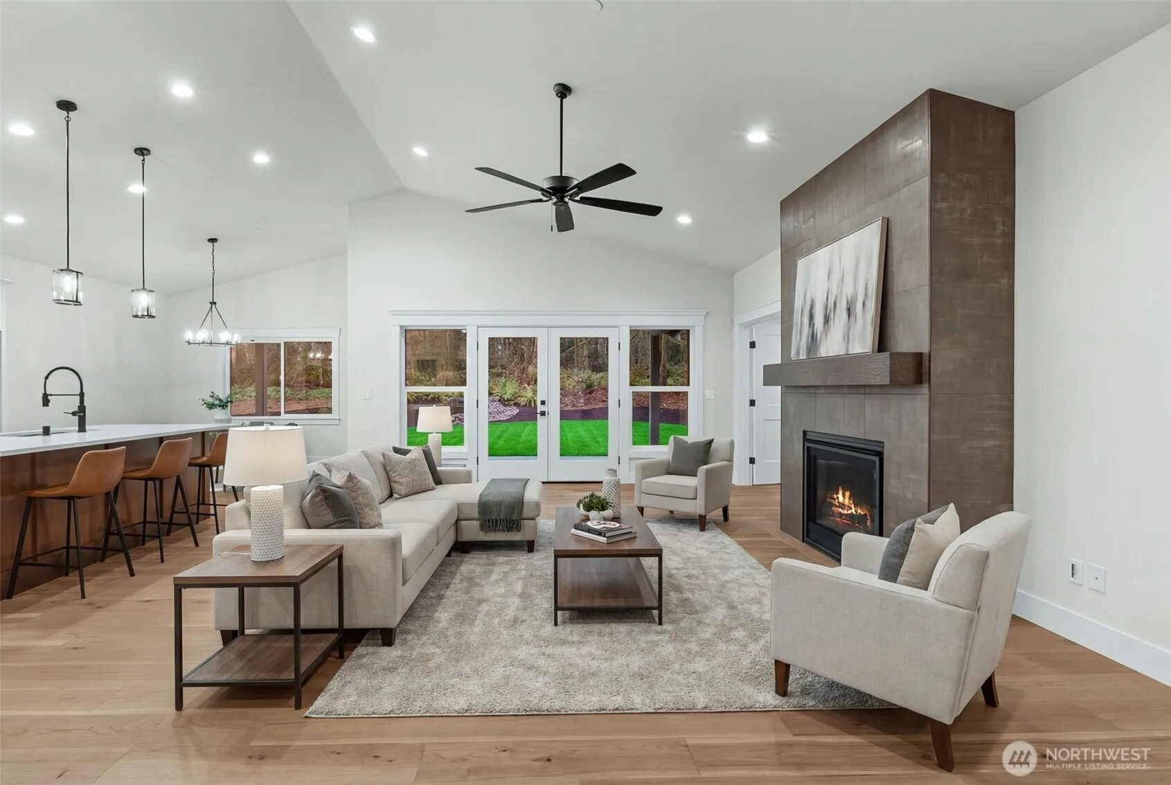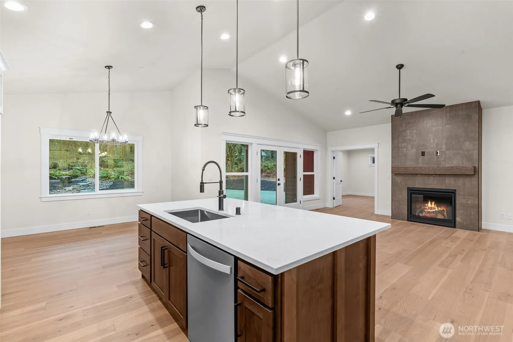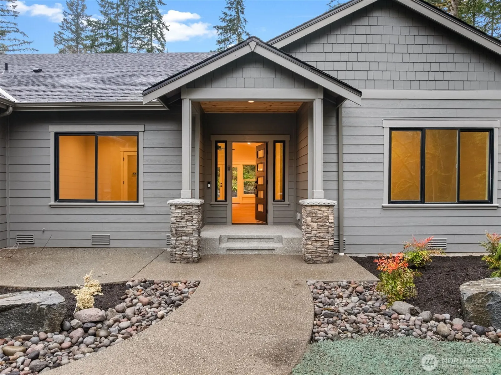 Brand new 2462 sq ft open concept rambler built by Eagle Homes on 5.10 acres very peaceful and unique setting. Home features 3 bedrooms 2.5 bath, den/office, plus large bonus room and 3 car garage. Vaulted ceilings, gas fireplace, forced air heating w/heat pump, fully wrapped windows, great lighting throughout, lots of storage, painted mill work, hard wood floors and tile floors, large laundry room w/sink and cabinets. Gourmet kitchen w/quartz counter tops, SS appliances including a 36″ gas professional range plus built in electric wall oven, cabinet lighting. Fully landscaped yard. Large covered patio makes enjoying the outdoors possible all year! Shared well and gravity septic. Move in ready 100% completed. Lots of room to build a shop.