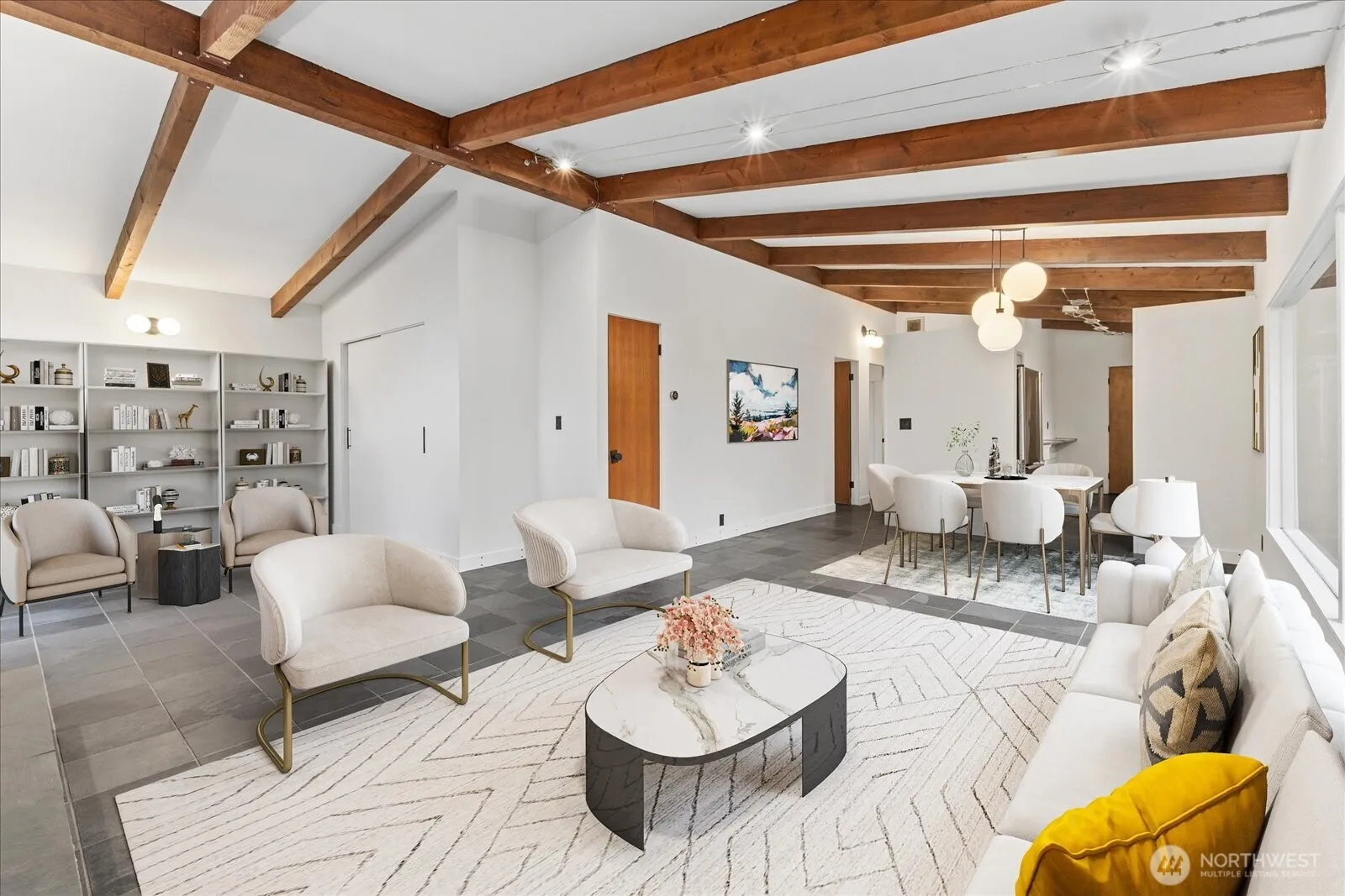 Located in Innis Arden, the timeless mid-century modern design combines clean lines & simplicity creating a home where form meets function. Low sloped ceilings, natural wood beams, stone floors, & glass create a space that is visually intriguing & relaxing. Expansive windows fill the home w/ natural light inviting the calm tranquility of nature inside. Newly updated w/ interior/exterior paint, retro lighting, door hardware & new roof. Additional features include nostalgic original tile countertops, large bonus room (approx. 400 SF) via a breezeway w/ primary suite potential (buyer to verify), radiant floor heating, private backyard & spacious patio. The Innis Arden community offers a private beach, tennis courts, hiking trails & much more.