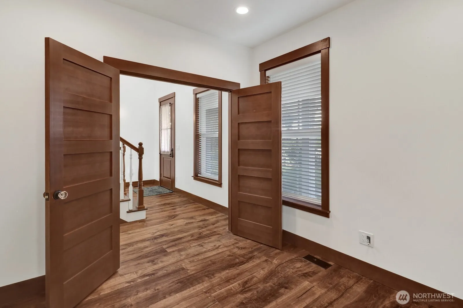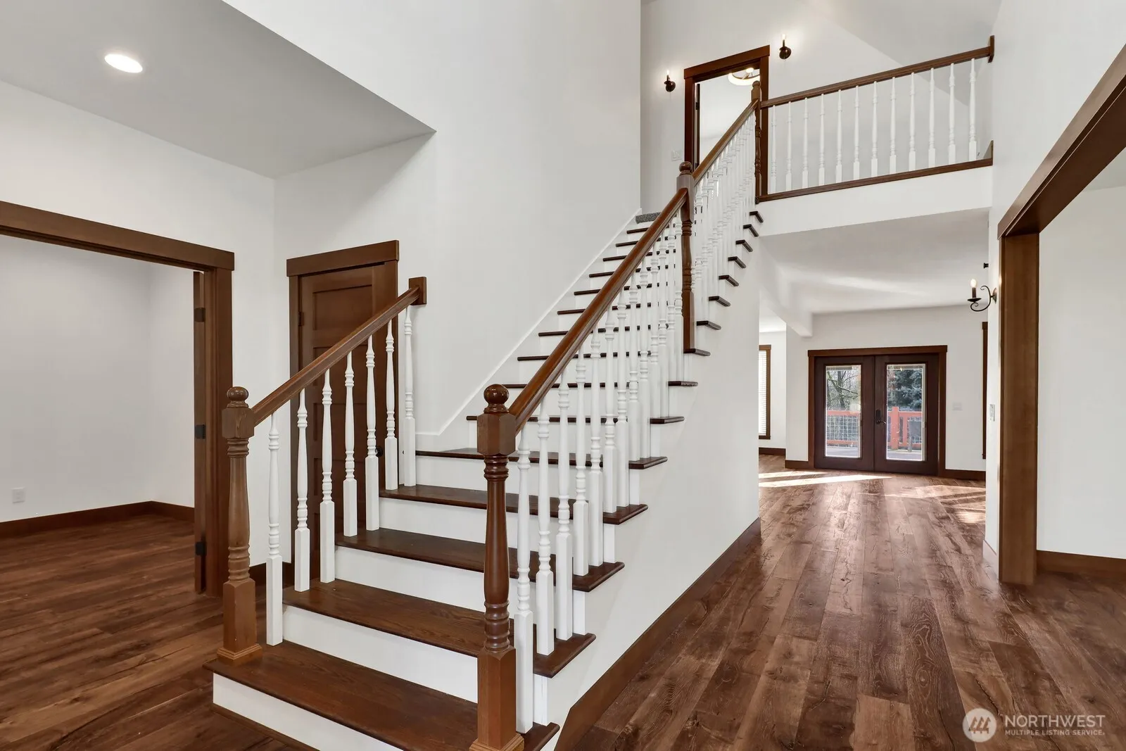 This exceptional 5-bedroom Lynden home blends modern 2018 construction with outstanding craftsmanship on a large, private lot. Enjoy premium finishes, hardwood floors, and a main-floor primary suite with a chef’s kitchen. The lower-level, possible ADU, adds a second kitchen, living area, and private entrance for flexibility. The two garages offers abundant space for cars and/or a great workshop. The south-facing backyard features a spacious patio overlooking open space and a peaceful pond. Near iconic Front Street yet tucked on the quieter east side, this home delivers quality, comfort, and convenience.