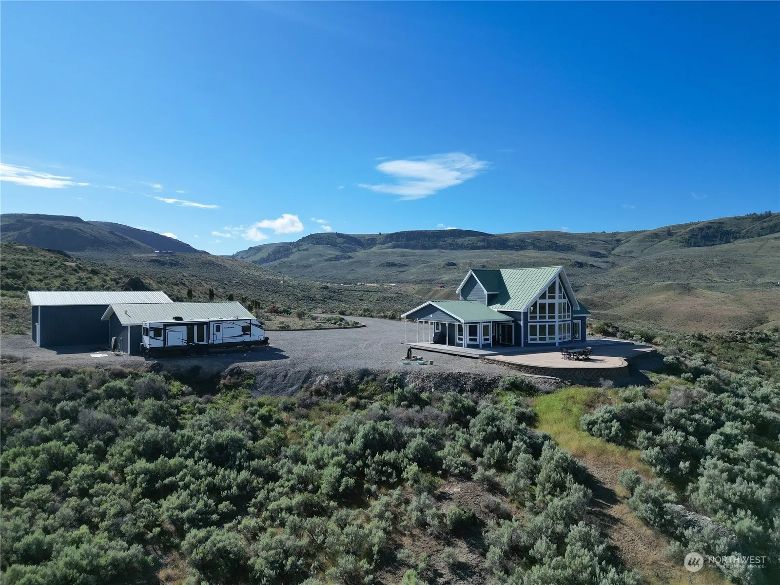 Stunning residence w/view of the Columbia River & Grand Coulee Dam. Step into the bright, spacious layout w/vaulted ceilings & panoramic views. Relax & take in the natural beauty! The roomy kitchen features a pantry, eating area, 2 entrances to the large newly stained patio & wrap-around deck. The primary bedroom offers private access to the deck. Upstairs, 2-additional bedrooms w/endless possibilities! Newer carpet, new interior & exterior paint. Includes AC, RV parking w/hookups & 3 wells. 2 large insulated shops are ideal for gatherings & storing tall of your toys & equipment. Spring Canyon Boat launch/RV park below w/ a beach & barbecue facilities. Golf course nearby. This dream property has so much to offer – don’t let it slip away!