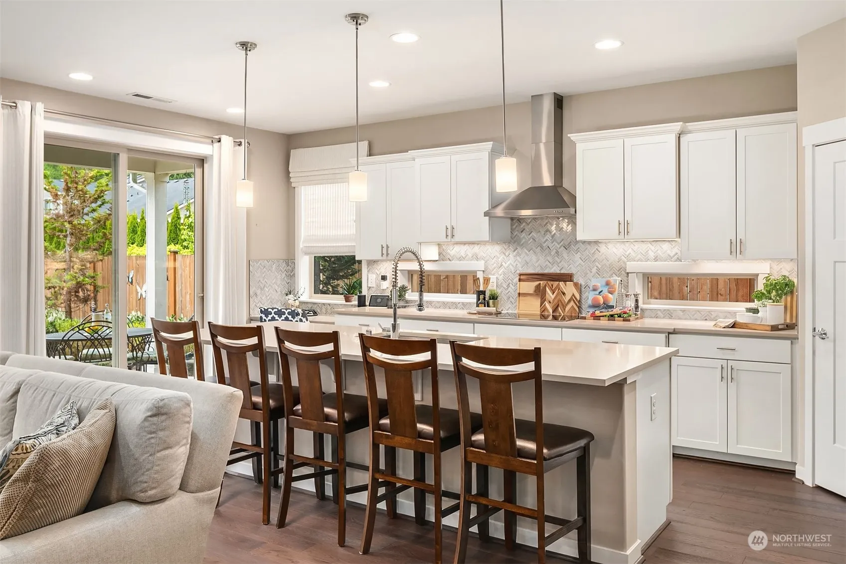 Single Story living and Former Model home at the Estates At Snoqualmie Valley Trail. Gorgeous open concept kitchen w/walk in pantry, stainless appliances, quartz counters and extensive island eating bar allows for the perfect place to entertain! Don’t miss those 9 foot ceilings and the cute desk/homework nook in the kitchen area. Great room design w/gas fireplace, dining nook. 3 bedroom/2.5 bath. Primary suite is ridiculous and spacious. Marble countertops in the primary bathroom and walk in the closet that will impress. An abundance of natural light throughout the home. Enjoy outdoor living year-round on your covered slate patio. You’ll love the convenience of strolling to the nearby Snoqualmie Trail,parks & downtown Carnation!