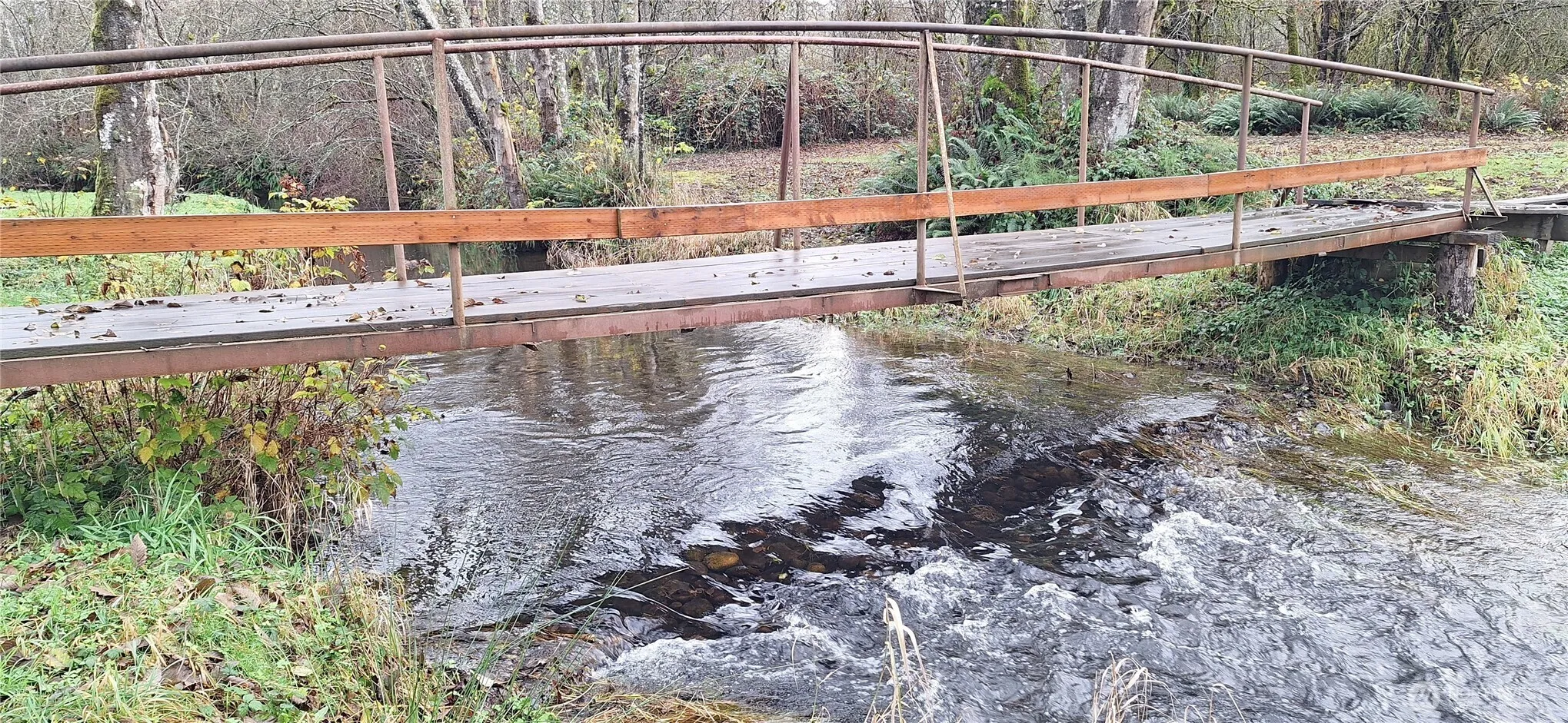 Solid Single wide on 2.13 acres. Sweet little creek meanders through the property with a quaint little walking bridge. 24 x 16 shop with wood stove and lean/to for firewood storage. Established fenced garden space and a happy little tire swing. Home has new kitchen and front room flooring.