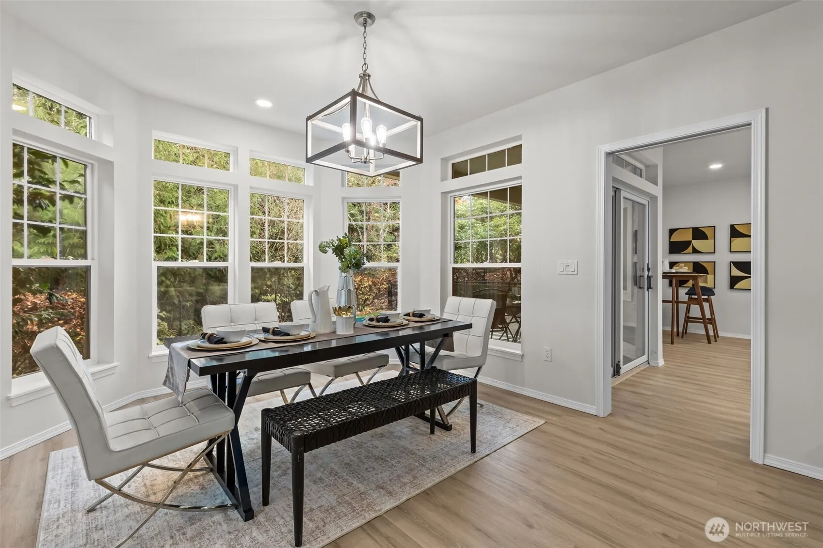 Welcome to this beautifully updated Forest Village home. The spacious floorplan offers a large living and dining room, den just off the dining room, open kitchen with new appliances, quartz counters & subway tile backsplash. Enjoy new LVP flooring, fresh paint, updated baths and new carpet in bedrooms. A primary suite with walk-in closet and a dual-vanity bathroom. A large second bedroom with an ensuite bath. High ceilings and oversized windows fill the home with light and greenery. Cozy gas fireplace for cooler days and a private patio for warm summer nights. View deer passing through the serene greenery. Oversized 2-car garage. This 55+ community offers exceptional amenities with an indoor pool, hot tub, fitness room, clubhouse and more.