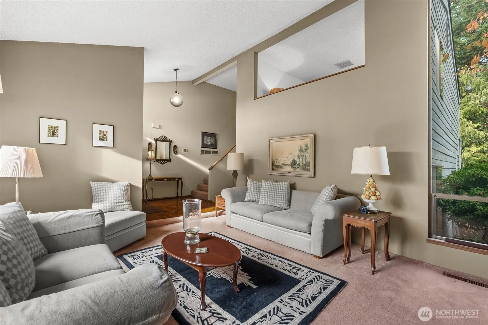 Discover the potential in this spacious NW Contemporary on a serene private lot. Light-filled main level offers a living room with fireplace and a bright sunroom off the kitchen. Upstairs features a large primary suite with walk-in closet and full bath, two additional bedrooms, full hall bath, and a loft-style den/office (possible 5th bedroom). Lower level includes a generous bedroom with separate backyard entrance, family room with second fireplace, and half bath—ideal for multi-gen living. Large backyard with deck offers great space for entertaining/gardening. Major updates include new water line, furnace, water heater, and a 3-yr old roof. Prime location near I-5, I-405, and Sea-Tac Airport. Bring your vision and make this home shine!