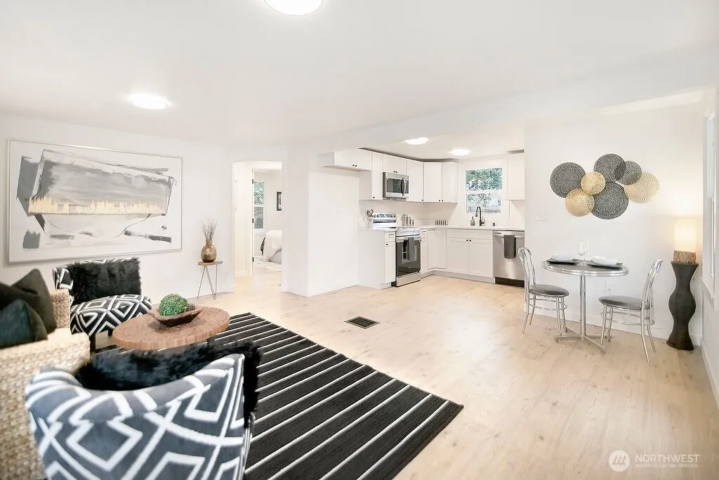 VANCOUVER — 3 Bedroom / 1 Bathroom — 1626 Sqft — Nearly 1/4 Acre — Living Room (Great Room) — Kitchen w/ NEW Stainless Appliances & Quartz Countertops — NEW Laminate Flooring — NEW Fixtures — NEW Interior & Exterior Paint — NEWER Roof — Vinyl Windows — Finished Basement — Fully Fenced — Garden Space — Trees — Covered Front Porch — RV Parking — Minutes to Downtown Vancouver — 15 Minutes to PDX Airport