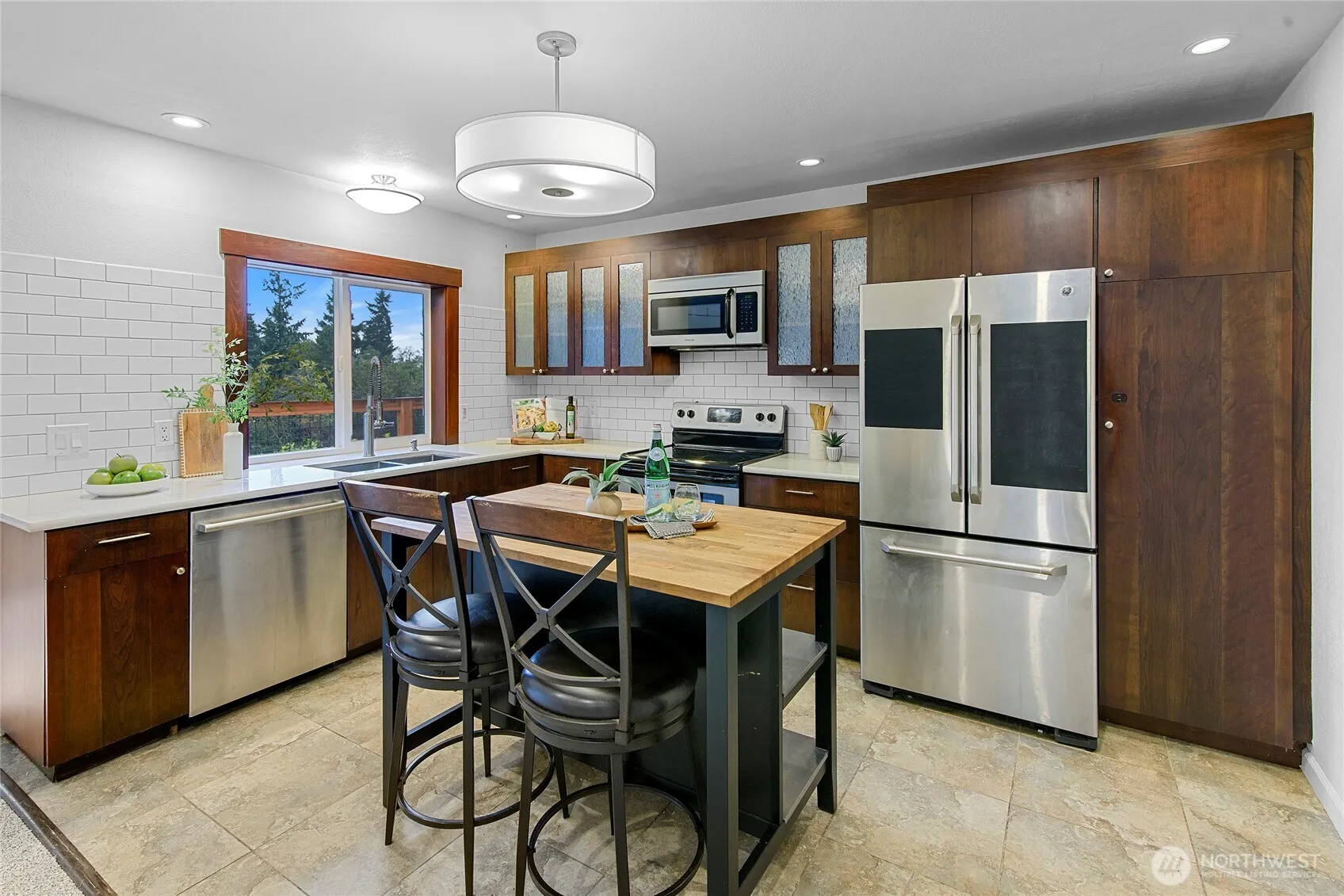 Enjoy sweeping Olympic Mountain sunsets from this light-filled Bremerton view home offering exceptional flexibility and space. The main level features a spacious family room with gas fireplace, bright kitchen with eating nook, and two primary suites ideal for guests or multigenerational living. Downstairs, you’ll find a full kitchen with separate entry, large rec room with gas fireplace, two bedrooms, full bath, laundry, and private walk-out patio to back yard. Outside, relax in a beautifully landscaped and private backyard with play space, zip line, natural woods, and wide western views. Located on a quiet street close to Illahee Preserve trails, shopping, schools, and the Bremerton Ferry, with ample storage and off-street parking. No HOA.