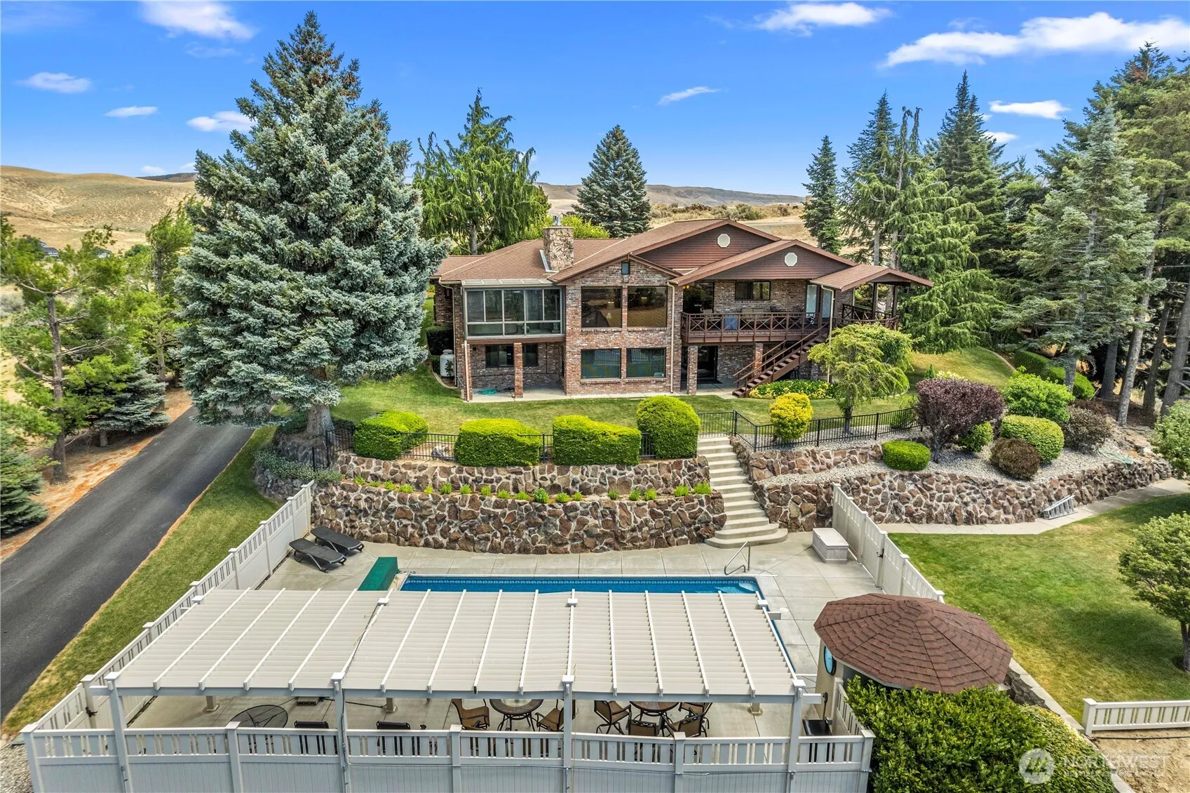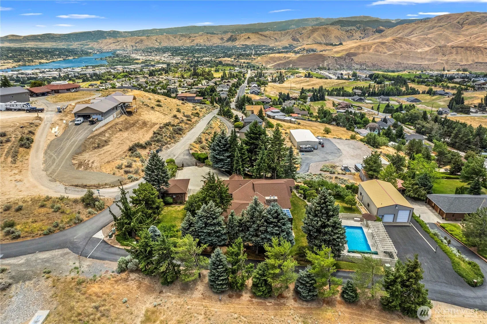 Come see this stunning Sunnyslope property at the top of the hill. Custom Brick Daylight Rambler on .95 of an acre! Beautifully landscaped yard with Irrigation water, and mature shade trees. This home is a Complete package with a million dollar view, in ground Pool, Privacy, plus 2 Detached Shops. Enjoy sweeping views of the Wenatchee Valley and Cascade Mountain Range. The spacious updated kitchen includes a wet bar, granite counters and double ovens, perfect for entertaining. A large great room with ample space. The primary suite features an updated bath with large walk in shower & a private sunroom with a hot tub viewing the Cascades. Lower level fully finished large open recreation/hobby room plus additional guest rooms.