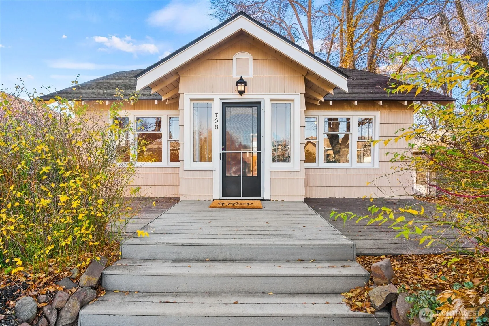 Classic Charmer in Central Ellensburg! This 780 sq ft 2 bed 1 bath exudes character! Step in & stow coats & boots in the entryway. Advance into large living area featuring original hardwood floors. One bedroom features original hardwood, the other brand new carpet. Adorable dining alcove in kitchen (new fridge, appliances included). Original doors, hardware, and built-in spaces add character throughout. Fresh exterior paint (’25), recently serviced HVAC, & new electrical panel (’25). Extra space in partially finished basement (laundry, canning room storage, and flex room). Outside, enjoy single-car detached garage, front deck, and mature landscaping. Just a dash to schools, CWU, downtown, KVH, farmer’s market- you name it. A must see!