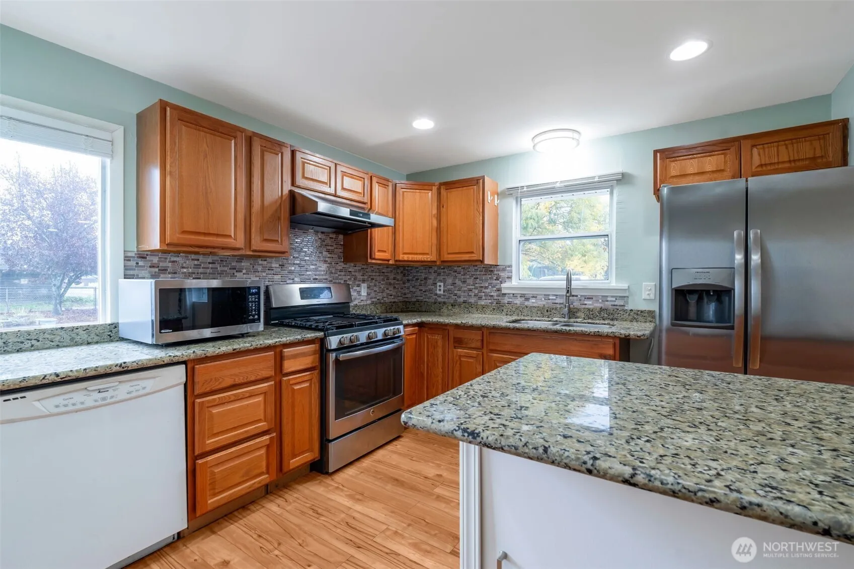 This home is cozy and private, filled with natural light. The spacious kitchen features ample cabinetry and counter space, making it ideal for everyday living. Enjoy a large living room, two comfortable bedrooms, and a stylish bathroom equipped with a smart toilet heated seat. The fully fenced yard is beautifully landscaped, perfect for gardening, playing, or simply relaxing on the spacious deck and soaking up the sunshine. Additional amenities include a large corner lot, ample off-street parking, and a storage shed. Conveniently located just minutes from Kent Station, which offers dining, shopping, and entertainment. This home also comes with packages for air sealing, flooring & attic insulation, and a brand-new gas furnace.