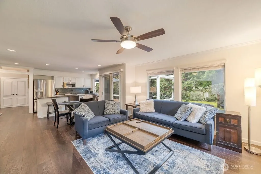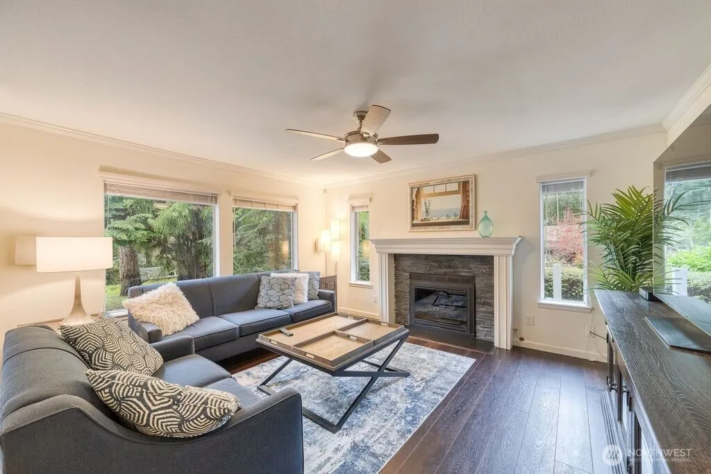 Impeccably maintained ONE LEVEL home perfectly situated in the highly desirable and sought after Sunrise Trace. Newer LVP flooring in the living, dining and kitchen. Both bathrooms remodeled. High end mill package with crown mouldings in every room, triple layers around the windows and coffered ceiling. Gourmet kitchen with leathered counter tops, huge island, gas stove and stainless appliances. Furnace and water heater both newer, 12′ ceilings, murphy bed, A/C, tile roof, huge garage (528 sq ft) and shop space. Wired for surround sound. Mature landscaping with beautiful park like grounds create total privacy with entertainment size deck and pergola.