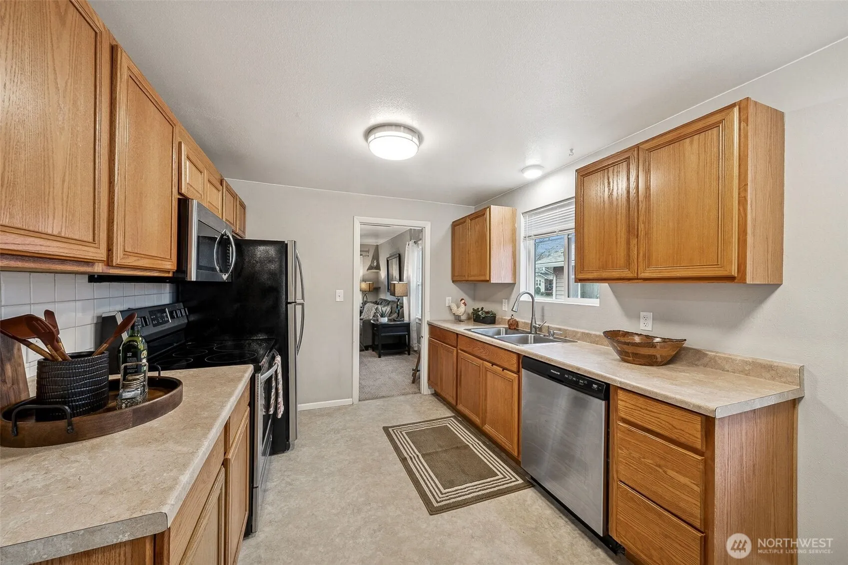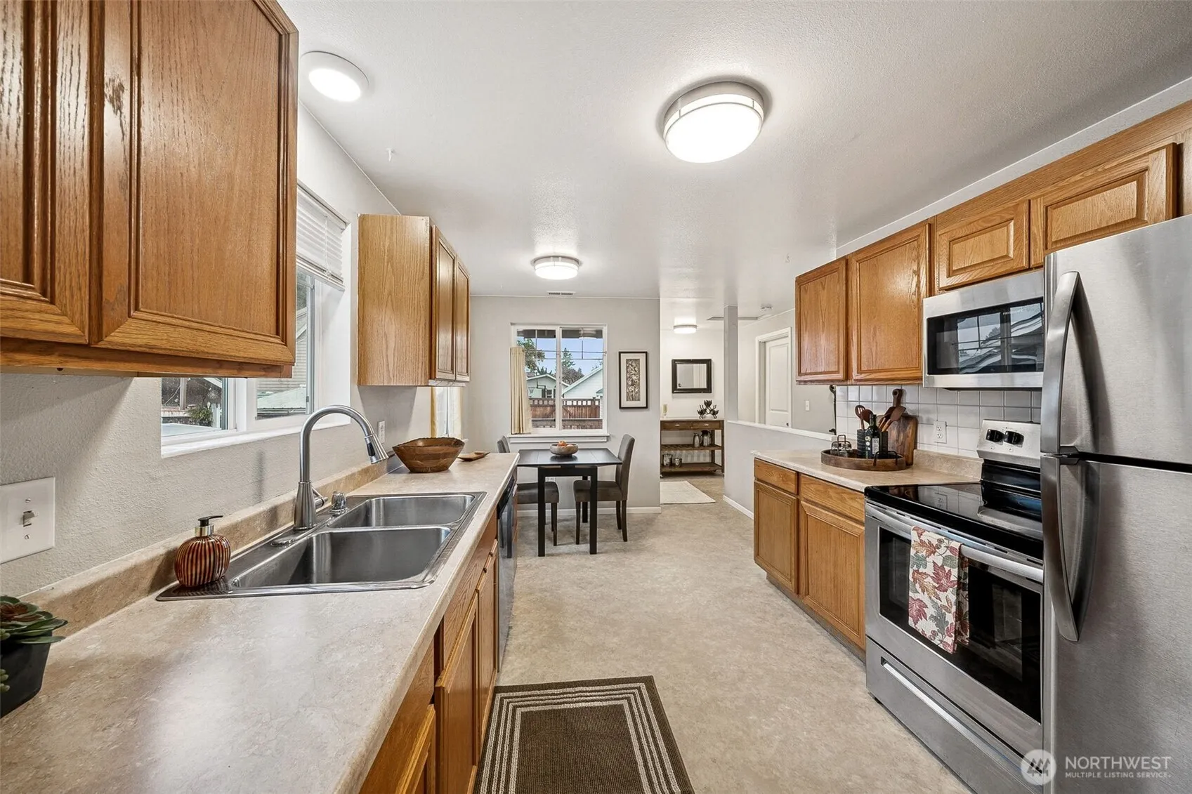 Nicely updated 2 bedroom,1.5 bath Craftsman with full basement just waiting for you to finish! Large comfortable living, kitchen with eating area. Primary bedroom with half bath, and second bedroom and main bathroom all on the main floor. Basement has ample height and egress windows to finish for additional living space. Fully fenced back yard with covered back porch, patio, RV parking and a detached single car garage with alley access. Newer roof, plumbing, windows, siding and more. Moments to vibrant downtown Enumclaw, shopping, bus lines, schools and more.
