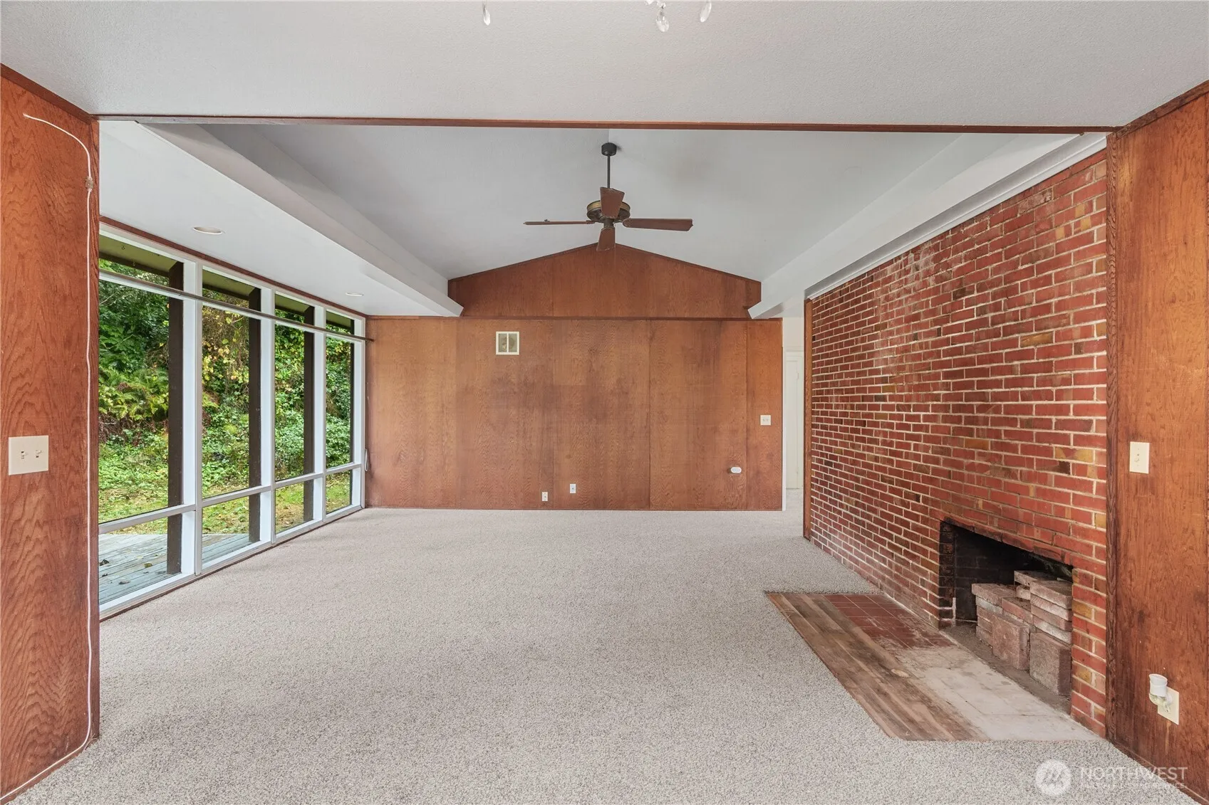 Tucked away on a quiet street, this home surprises with its light, space, and privacy. This 2-bedroom, 1-bathroom layout is paired with dramatic floor-to-ceiling windows overlooking a serene backyard, perfect for soaking in the sunlight or enjoying a peaceful view from your living room. Vaulted ceilings and a wood-burning fireplace bring warmth and character, while the updated kitchen and bathroom make everyday living easy. The private deck and partially fenced yard feel like your own little retreat. With off-street parking, a practical one-story layout, and OUT of flood zone with no flood insurance required, this home offers both charm and peace of mind. Whether you’re buying your first place or ready to simplify, this one’s ready to go!