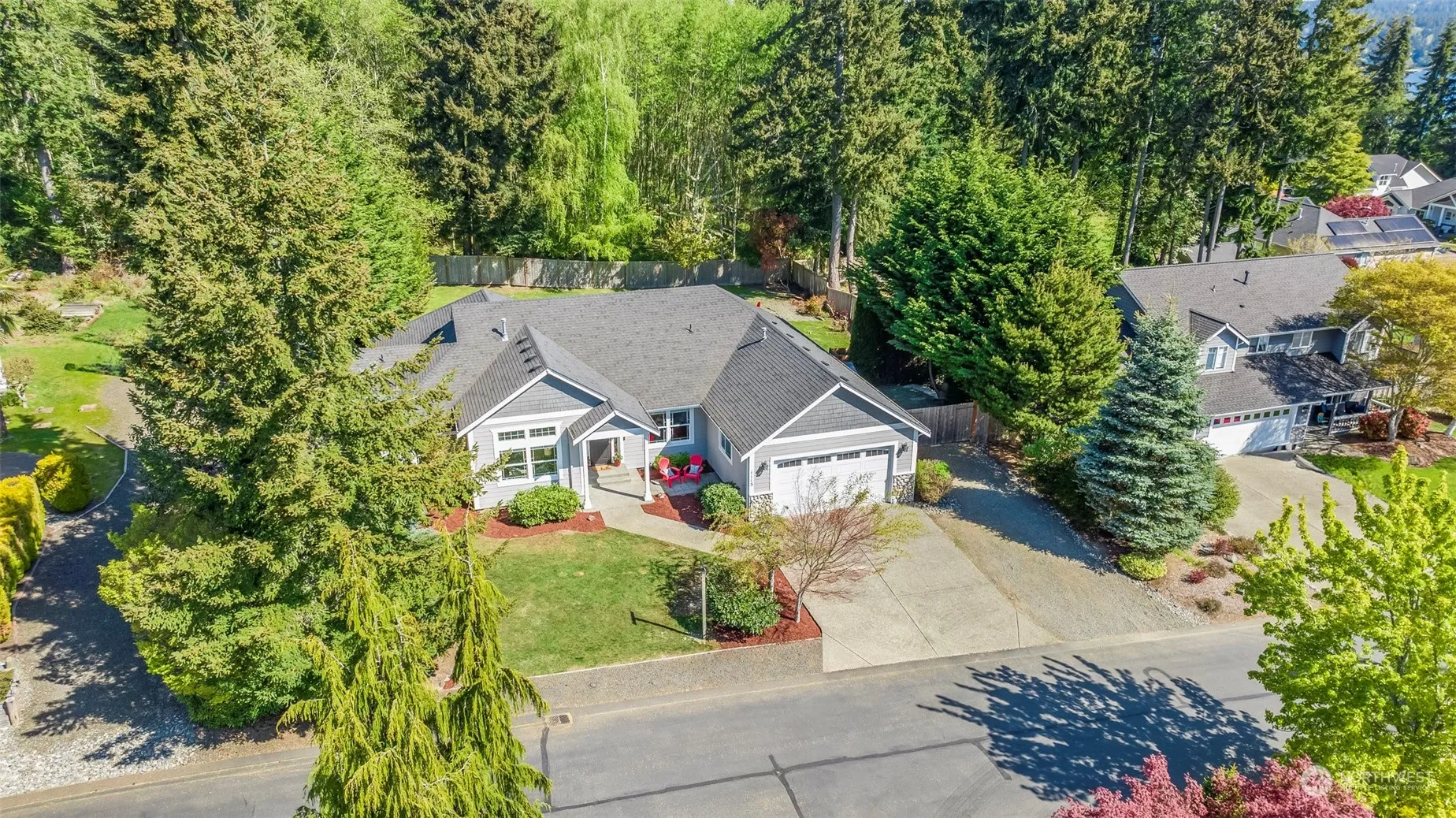 The search for the perfect rambler is over!! Point Richmond Ridge welcomes you to this beauty… situated on a premier, .36 acre south facing lot that backs to a large greenbelt, making the back yard a private serene sanctuary. With abundant sun at all hours, this bright & cheerful abode will leave you grinning from ear to ear. You’ll be wowed by the size of the kitchen, especially the giant quartz island, & vaulted ceilings making it the true heart of the home. The primary suite & office are perfectly positioned in its own private wing, opposite the two guest bedrooms, bath, & laundry. Hardwood floors extend throughout the common spaces, new carpet in the bedrooms. A setting this serene is nearly impossible to find. Hurry!