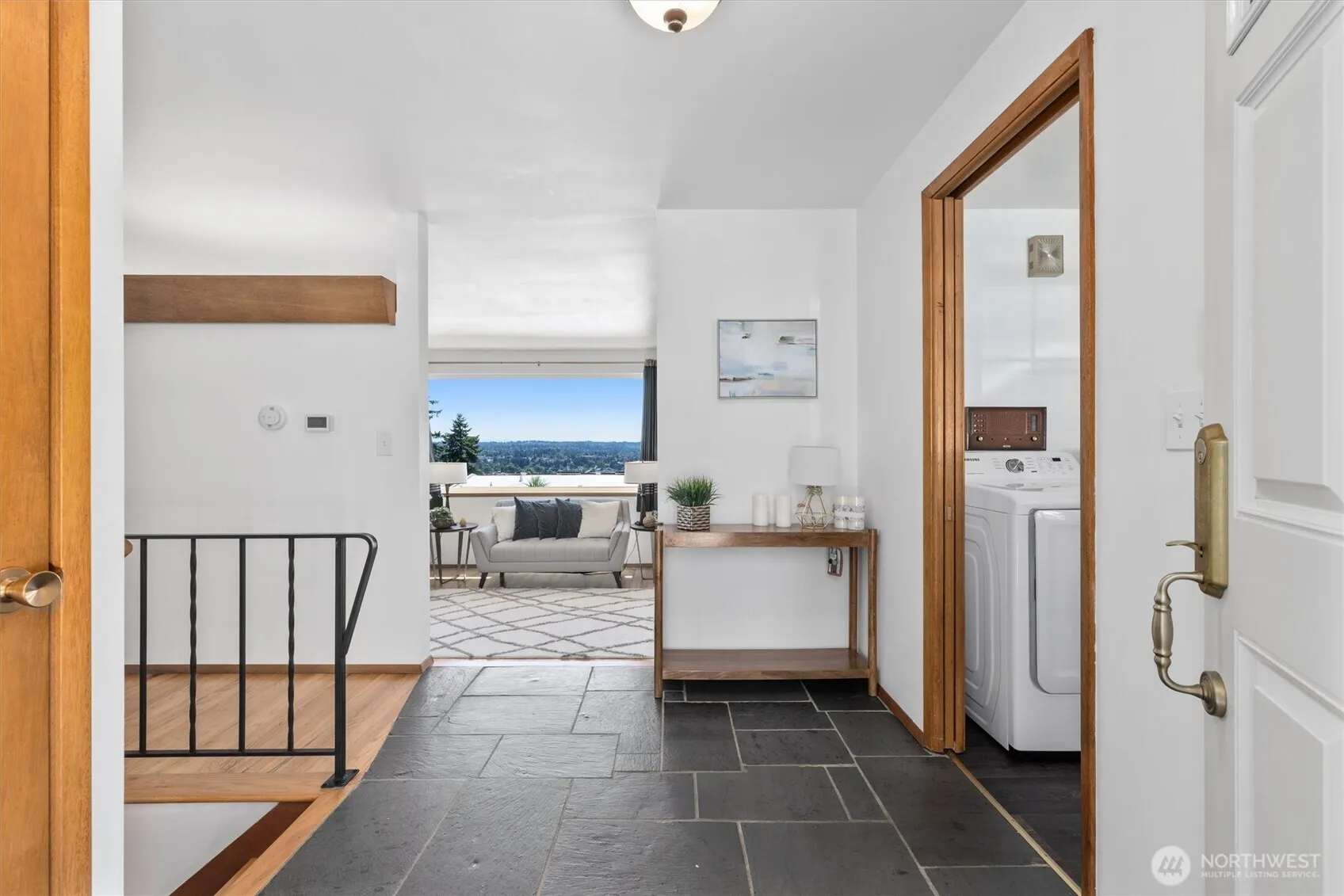 Puget Sound and Mt. Rainier views headline this rare mid-century gem in coveted North Hill—perfect for 4th of July fireworks. Sun-filled main level features hardwoods, central A/C, gas fireplace, and a living room that opens to a Trex-style view deck. Wake to Sound views in the primary suite with private ¾ bath. Finished lower level offers a huge pine-paneled rec room with mini-bar, large finished flex room, plumbing for a second washer/dryer, bath, and exterior sidewalk access—ideal for MIL suite, office, or abundant storage. Lifetime metal roof and major improvements done. Entertain on the view patio with natural-gas quick connect. Impeccably maintained, low-maintenance, fully fenced yard completes the package.