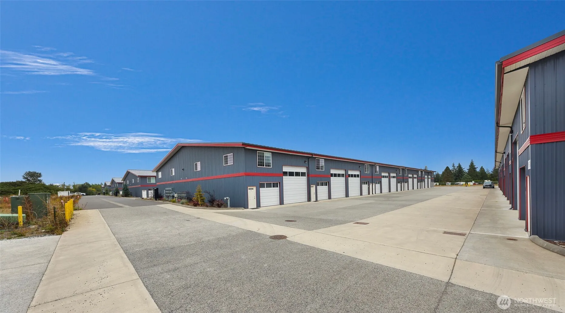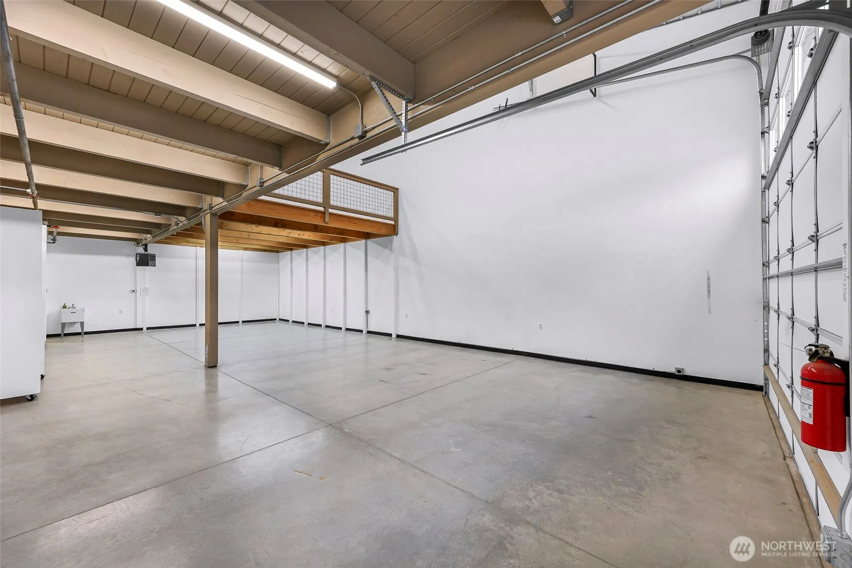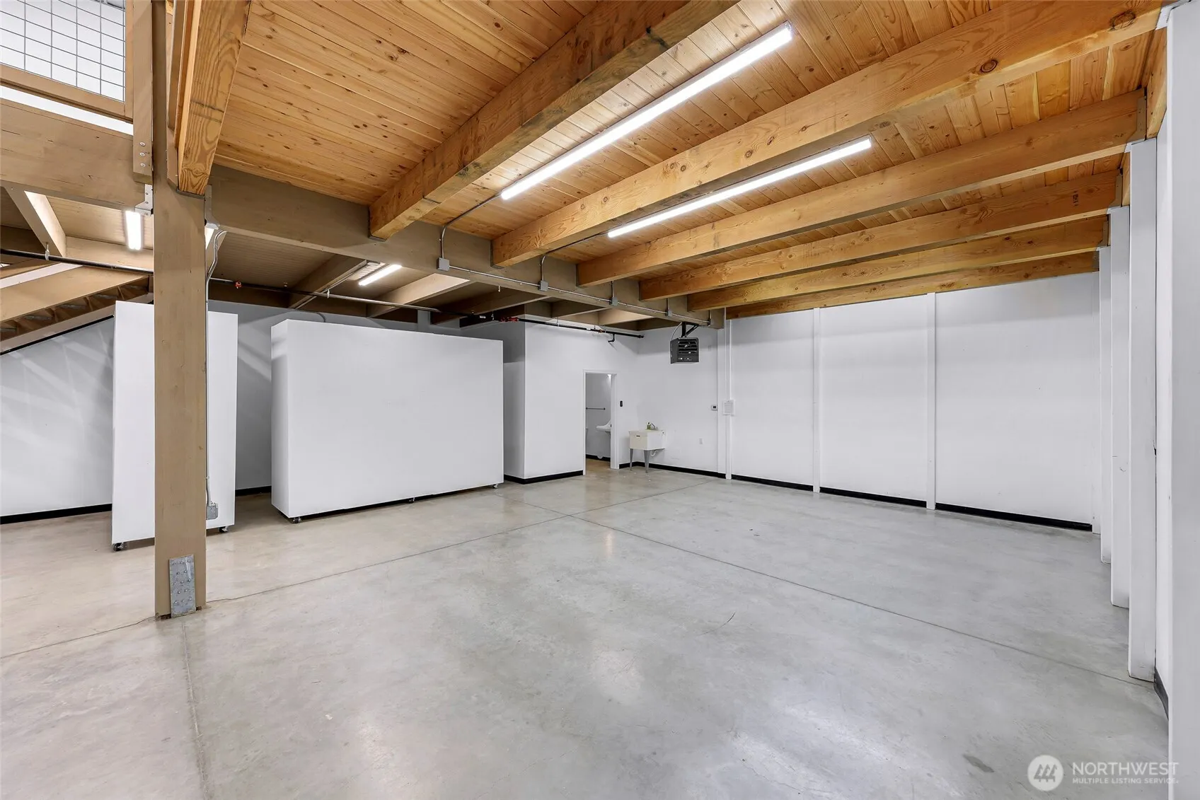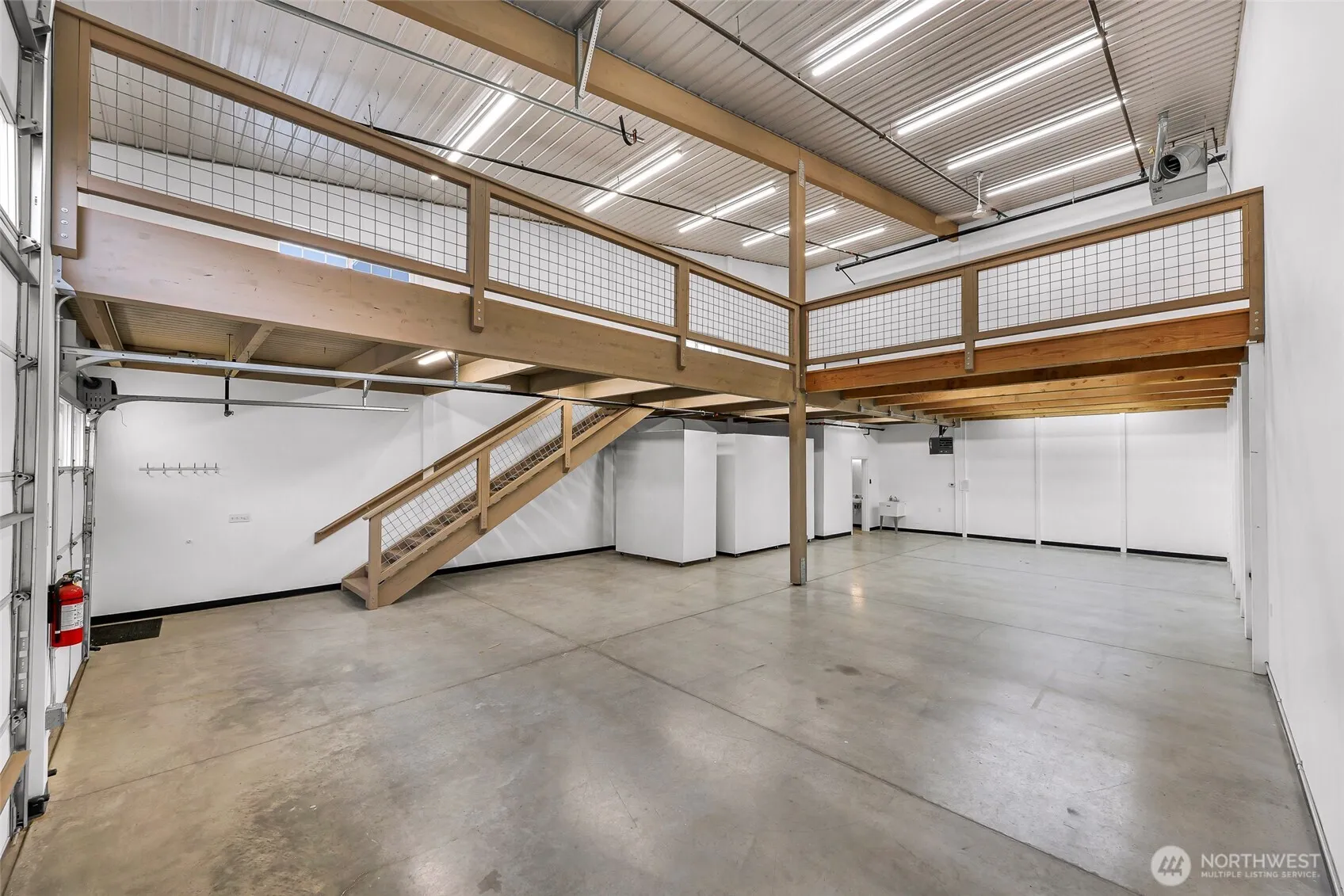 End unit w/ extra storage, second sink, portable walls & more windows to bring in more light. There is also an option for ventilation. Pioneer Flexspace Condos just off Portal Way in Ferndale off I-5, features approx. 2600 sqft of storage. The main floor is a concrete slab approximately 30’x 50’ (1516sqft). The timber framed mezzanine adds approx. 1100 sqft. Two overhead doors (14’x14’ & 9’x8’), a main entry door, vinyl windows, smooth concrete floors, 3/4 bathroom, utility sink, 75k BTU natural gas heat, small electric heater, upstairs sink, 50 gallon HW tank, 100 amp panel w/ a 50amp RV plug, wired for communications w/ Comcast & fully sprinkled. Individual address and mailbox with each unit. W&S included.