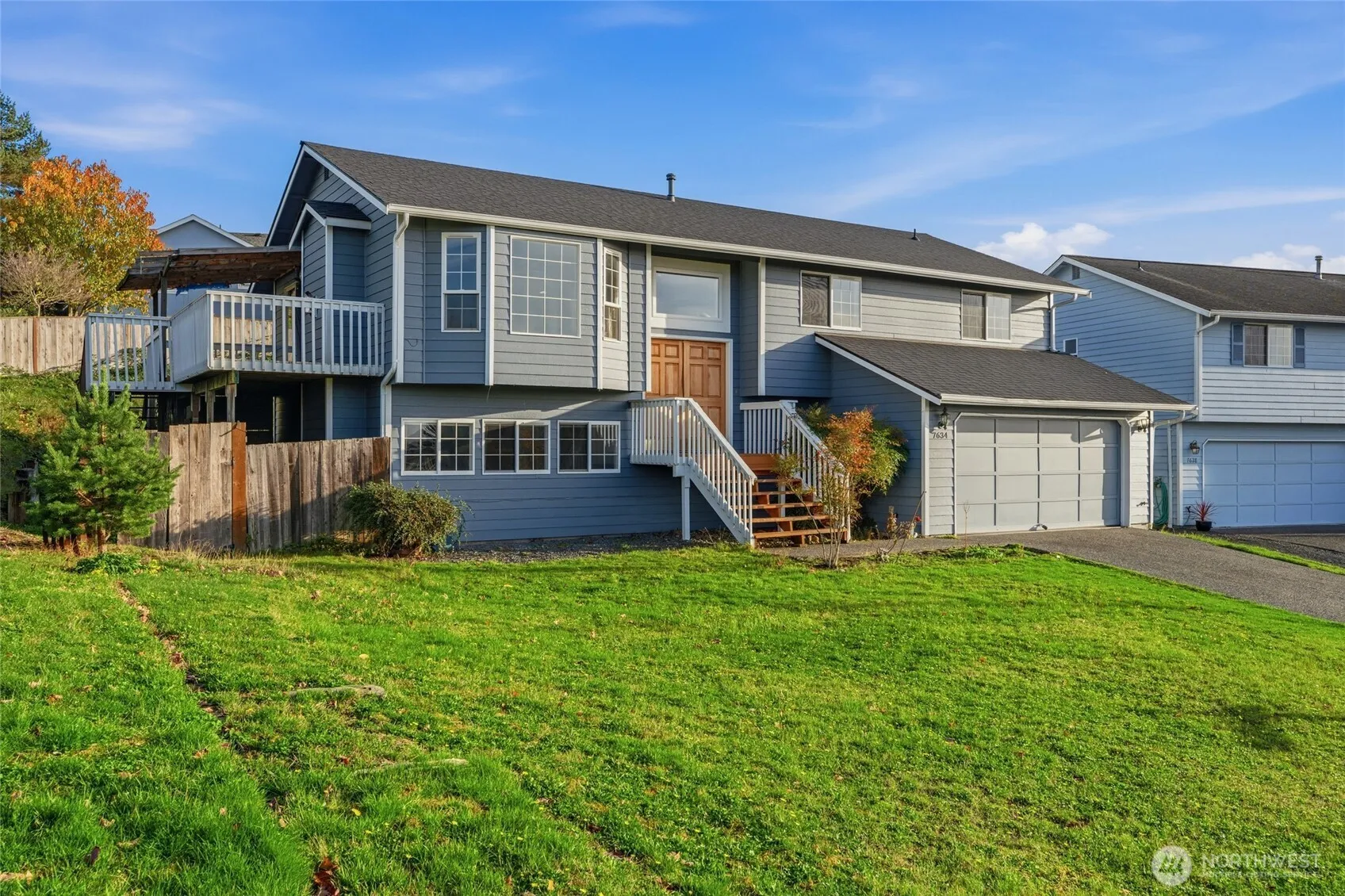 Welcome to this spacious split-level home in a quiet neighborhood near Cedarcrest Golf Course! Featuring newer carpet, updated trim & LVP flooring, this home offers comfort now with room to add your own style and build sweat equity. The bright living room boasts vaulted ceilings, a gas fireplace & beautiful water views. Enjoy a large kitchen with ample storage and access to an expansive deck. Upstairs includes a primary suite with ¾ bath & walk-in closet plus two bedrooms & full bath. Downstairs features a rec room with fireplace, wet bar & slider to the yard, plus an additional bedroom, full bath & laundry. Lower level is great for multi-generational living! Set on a 10,019 sq ft lot—an excellent opportunity in a great location!