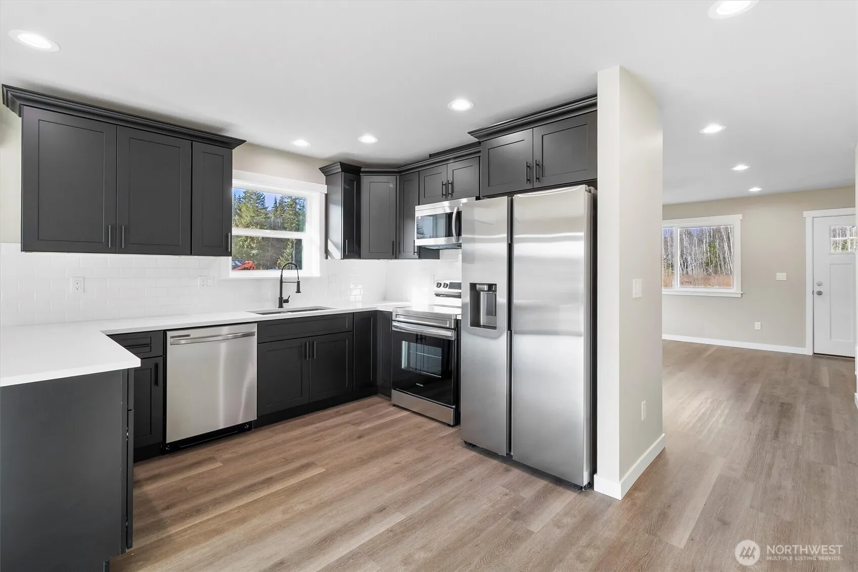 Quality-built BRAND NEW home in a new gated development. Welcome to Red Mountain View. This new 3 bed, 2 bath home featured a double car garage on really nice sized 9,357 square foot lot. Enjoy the luxury vinyl plank flooring throughout, stainless appliances package, quartz counters, dual sinks in primary bathroom and a one head mini-split unit that provides low-cost heating and A/C! Popular U-shaped kitchen with shaker style quality soft close cabinets (in black!!) & a nice patio off the dining area. Treat yourself to a brand new home about a 30-minute drive from Bellingham. One year builder warranty included, wired for generator, & garage has plug for electric car charging! Enjoy living in a gated development with stunning mountain views!