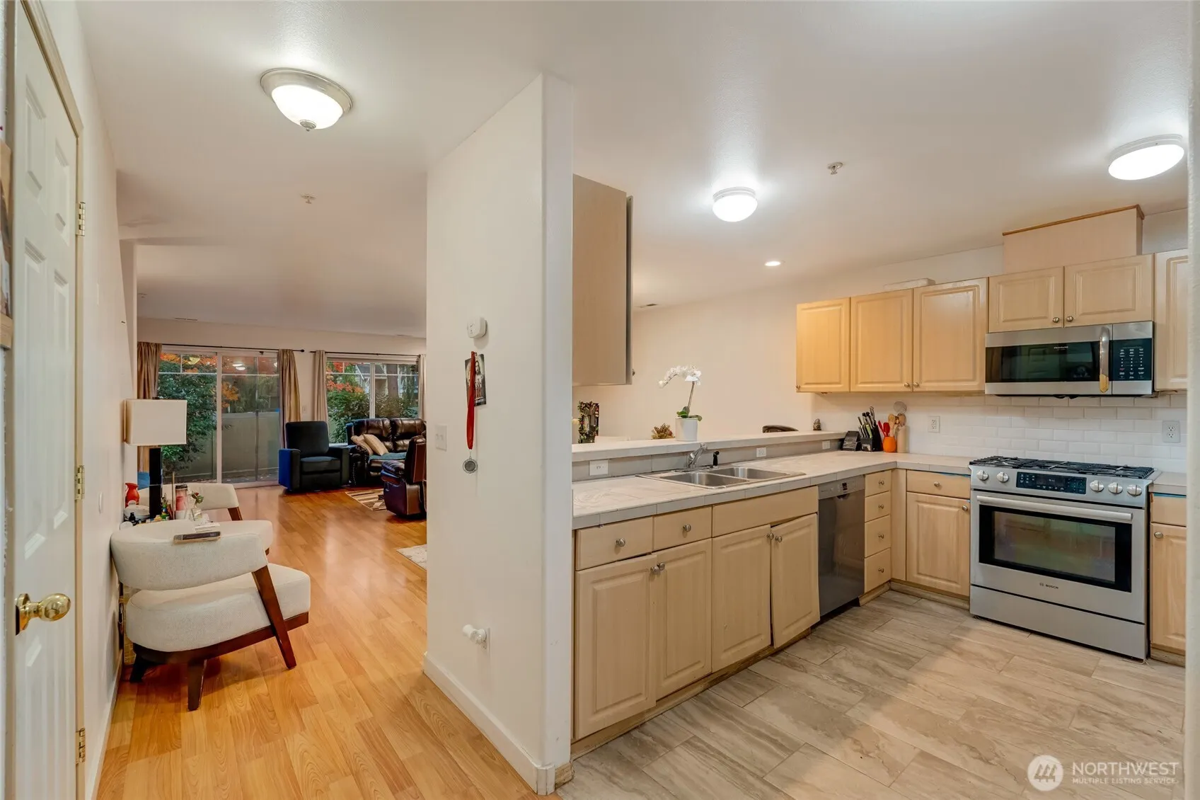 Prime location in a gated community! Dont miss this gem of a townhouse with a layout that makes sense! Desirable open concept floorplan featuring a kitchen with a breakfast bar and SS appliances. Garage and powder room at main entrance. Relax in the spacious living area w/a cozy gas fireplace or step out to your private patio! Main hallway, dining area, and living room boast hardwood flooring, while plush carpet adds comfort upstairs. 3 spacious bedrooms w/ the primary including a walk in closet and ensuite bath. Newer washer/dryer. 1 car garage parking and 2 driveway parking. Great HOA that consistently maintains the community. Enjoy convenient access to the light rail, I-5, I-405, Paine Field Airport, Alderwood Shopping Center and more!