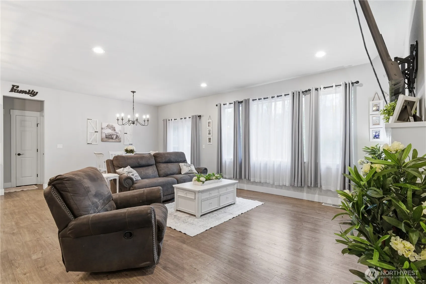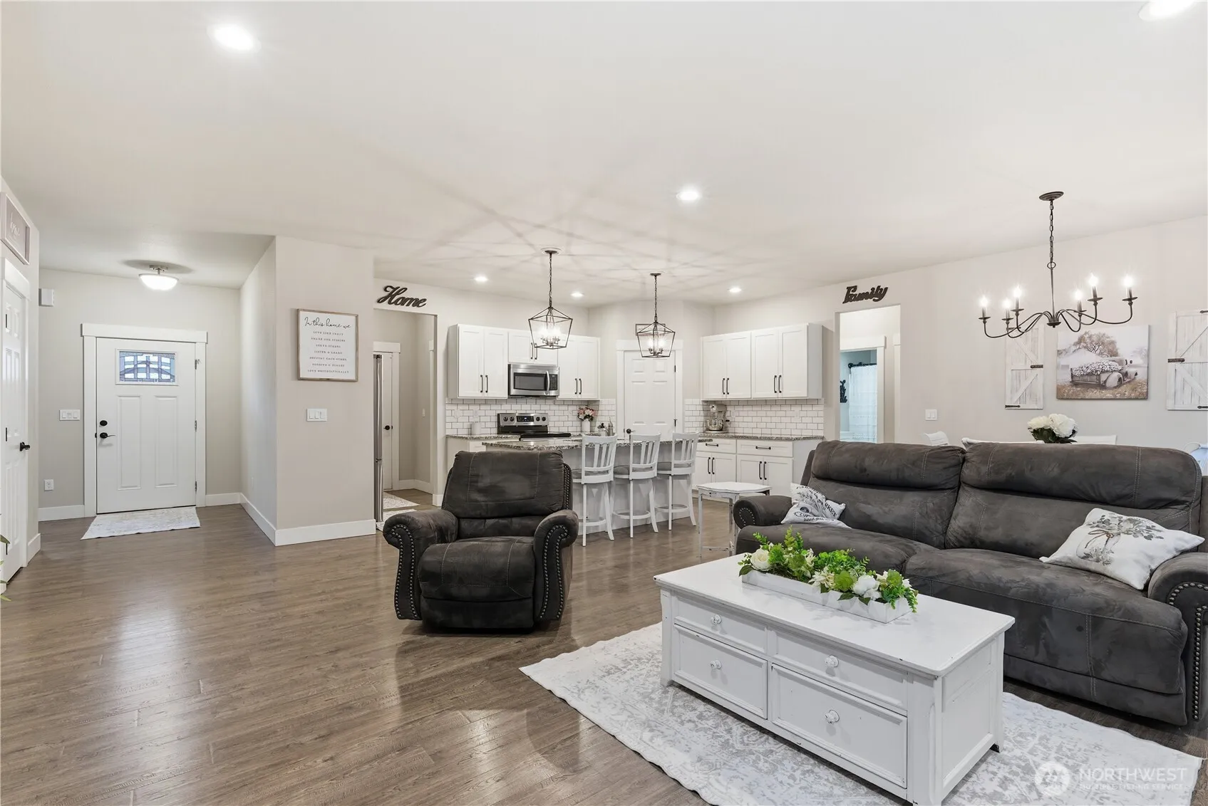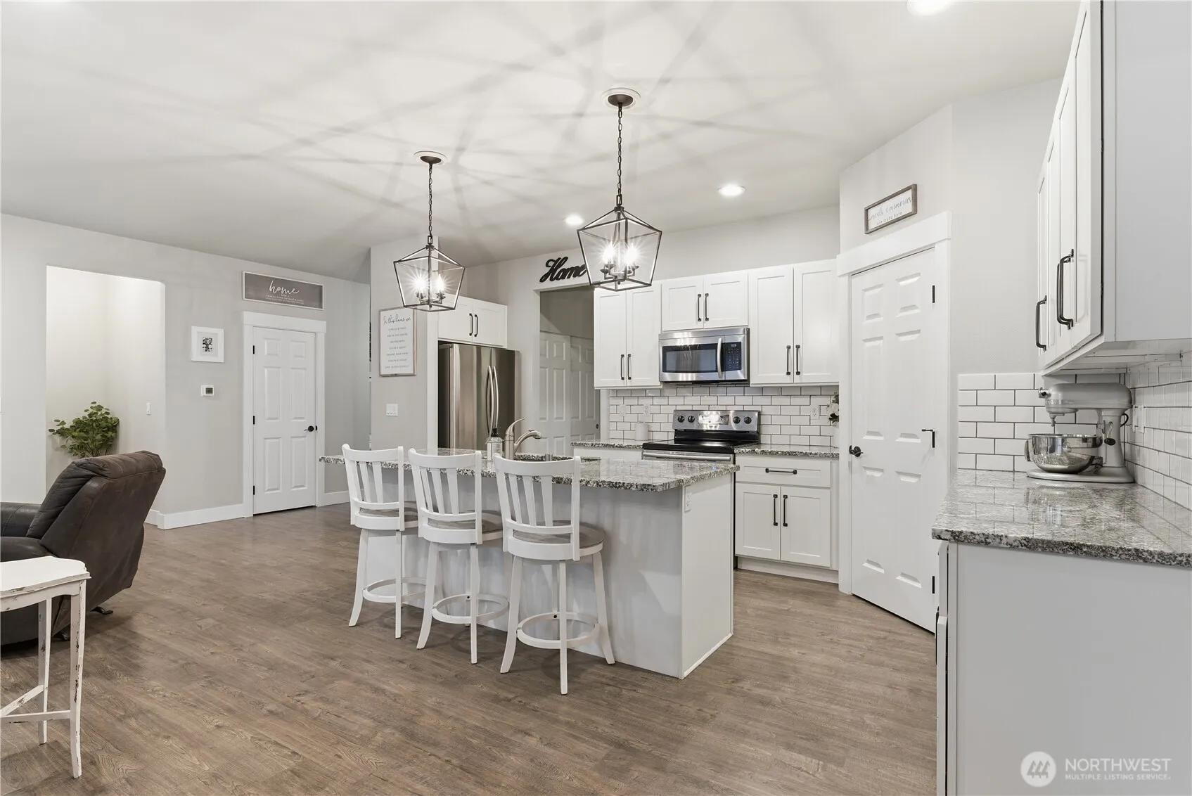 Modern style, thoughtful design, and a tranquil natural setting in this 3-bedroom, 1.75-bath rambler, offering a perfect blend of comfort and privacy. Deluxe craftsman-style design with a three-car garage & well-maintained landscaping, including hot tub. The open-concept living area welcomes you with abundant natural light, neutral tones, and elegant finishes. The spacious living room flows seamlessly into the dining area, making it ideal for both relaxing and entertaining. Granite countertops, white shaker cabinets, stainless steel appliances, and a large island with bar seating. The primary suite includes a private bath with modern fixtures and walk-in closet. Two additional bedrooms provide flexibility for guests, an office, or hobbies.