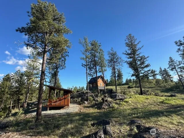 Rare opportunity to own 20 beautiful, easily accessed, treed mountain acres w/ stunning, hand-crafted cabin & outdoor kitchen. This gorgeous, gated land has everything you’re looking for: thick stands of fir & pine, open grassy meadows, rugged rock outcroppings, & big views for miles. Zoned residential, this is an easy build w many great home sites, power at lot’s edge & roads maintained/plowed by HOA. Camp out NOW in the cozy, off-grid, site-built dry cabin. Uniquely elegant, from the warm spruce cabinets to the work-of-art pine branch loft railing. Wired for solar power station (included!). Cool outdoor kitchen features a SS sink w running water (small holding tank), solid pine bar top & cabinets, porcelain counters. Near wine country!