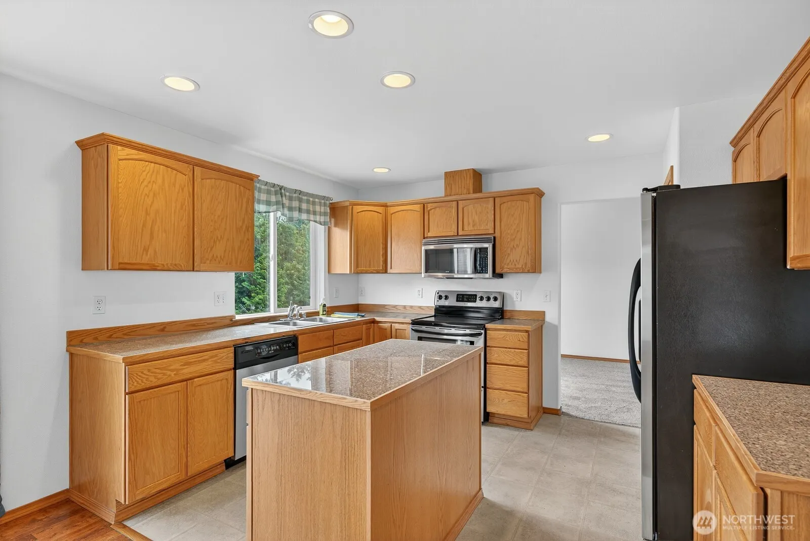 Welcome to this Beautiful 2 story home! Tile entry and cathedral ceilings open to spacious living & dining areas. Modern kitchen w/ granite counters/Island, SS app. & plenty of cabinet space. Great room w/hardwood floors, gas F.P. Powder bath & laundry conveniently located on main. 2nd Story, up Grand staircase, behind dbl doors, you have a Fabulous Primary suite W/5 piece Bath & walk-in closet. 2 additional bedrooms & full hall bath. All new carpet & interior paint throughout. AC and Gas heating. Brand new cedar deck with stairs to access fully fenced/gated back yard. Nice corner lot with an adorable covered front porch, just needs a swing ; ) Neighborhood has paved trails and sports court too. Move in ready!