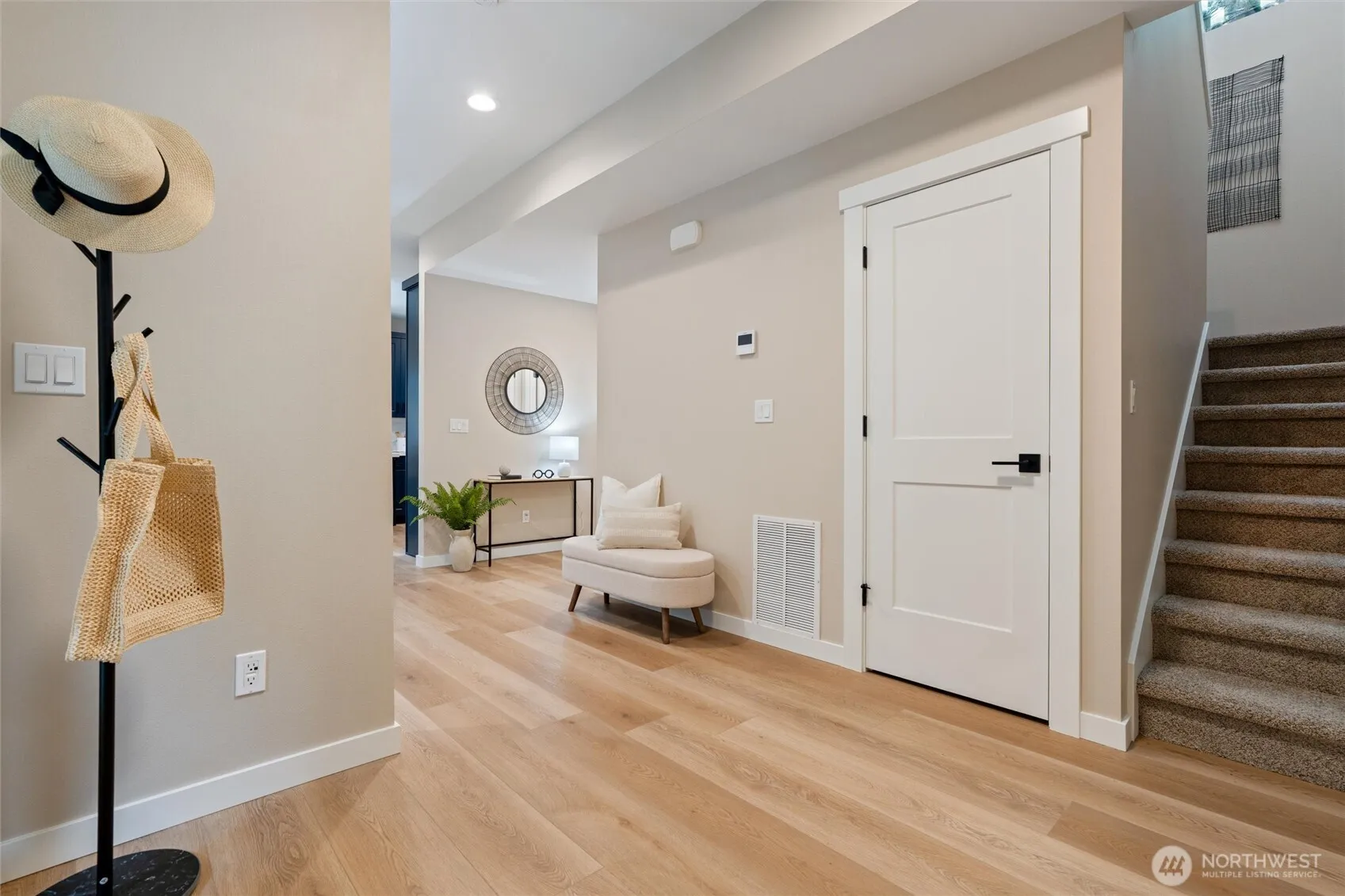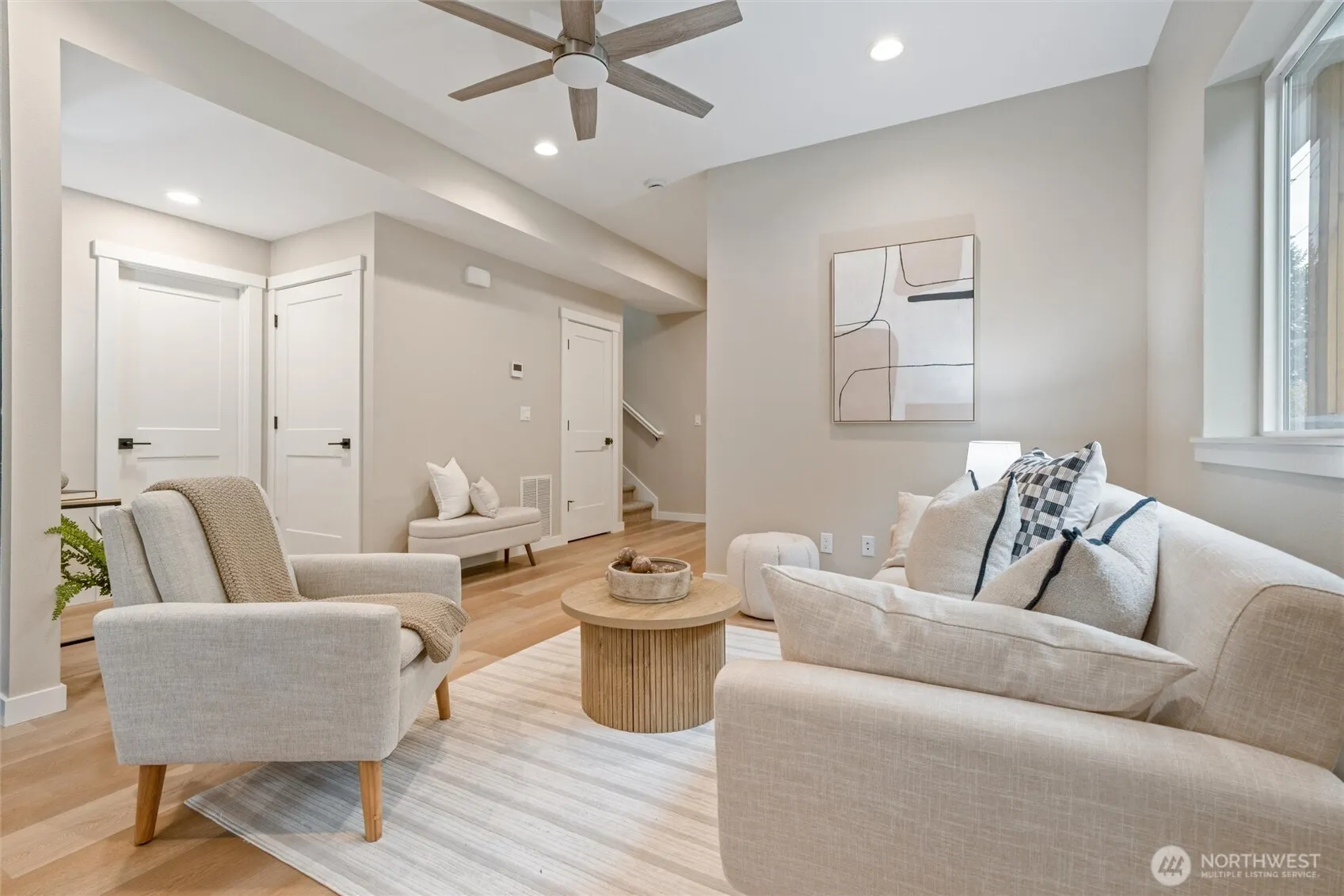 Stunning new construction on .61 acres featuring 3 bedrooms, a dedicated office, and an upstairs family room with partial bay views and glimpses of the Olympics on clear days. The primary suite offers radiant heated floors, custom tile, and elegant finishes. Quartz countertops, custom cabinetry, specialty lighting, and night lights in every room add comfort and style. Mud room off the back patio, plus ample storage throughout. Cedar and stone exterior accents, dusk-to-dawn lighting, and a convenient location near the freeway and shopping complete this modern, private retreat.