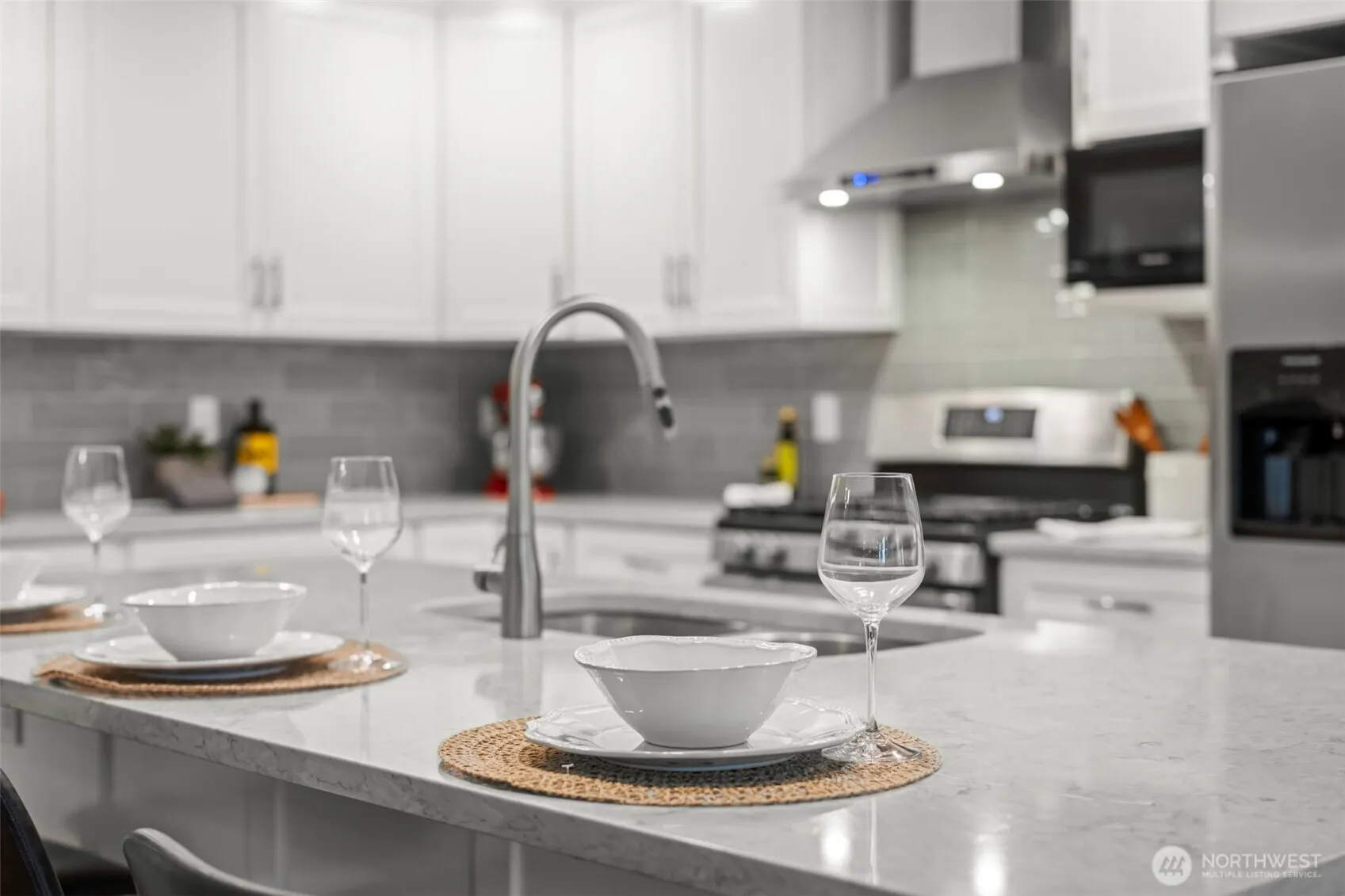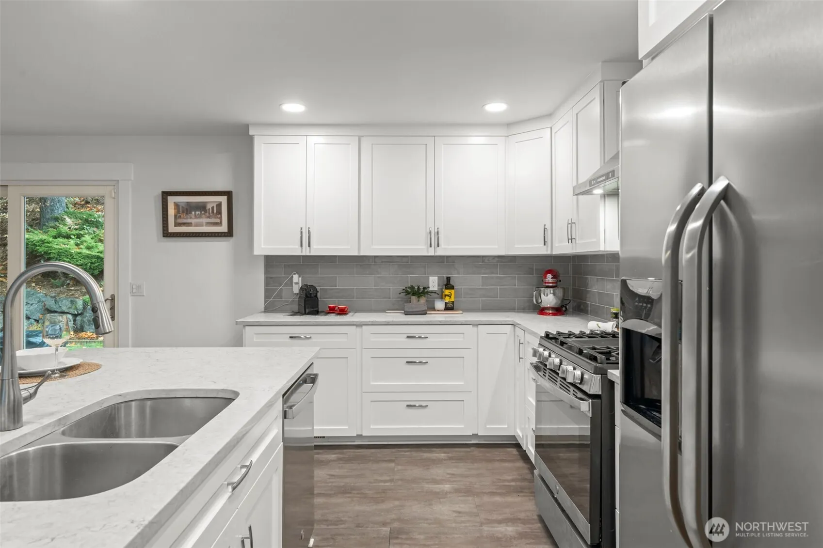 Beautifully updated! Enjoy a stunning chef’s kitchen featuring large island w/seating, tile backsplash, SS appliances, & pantry. Open-concept, gorgeous hardwoods, & spacious dining room for entertaining. Cozy up to 2 fireplaces, one on each level. This home boasts Primary suite w/2closets & 3/4 bath, 2 guest bds w/balcony access. Unique lower level, ADU incl kitchen, dining, full bath, bdrm, & large family room, or downstairs office/flex space. Tranquil backyard w/view area above, stone pathways, terraced planting beds, sprinkler system & large shed. Views of the Sound! Port Package! Roof & HVAC less than 2 yrs old, 2 car insulated grge, A/C, RV parking. Easy access to I-5, shopping, & Des Moines Creek Trail! Pre-Inspected & move in ready!