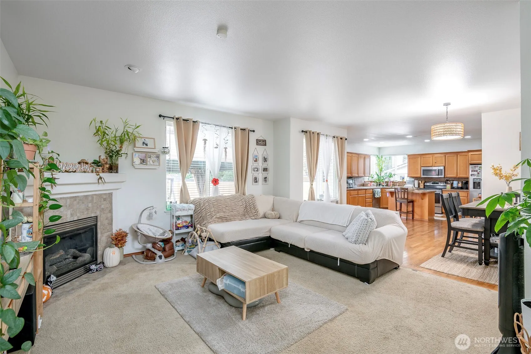 This 4-bedroom, 2.5-bath home combines space, comfort, and modern convenience in a desirable Spanaway location. The open main level features a welcoming living area with a gas fireplace, dining space, and a well-designed kitchen with stainless appliances, center island, and plenty of storage. Upstairs, the spacious primary suite offers a soaking tub, dual vanities, and a large closet, accompanied by three additional bedrooms and a full bath. Enjoy a fully fenced backyard with an extended patio, perfect for relaxing or entertaining. With A/C, a 3-car garage, and close proximity to JBLM, schools, parks, and shopping, this home delivers the lifestyle and flexibility you are are looking for!