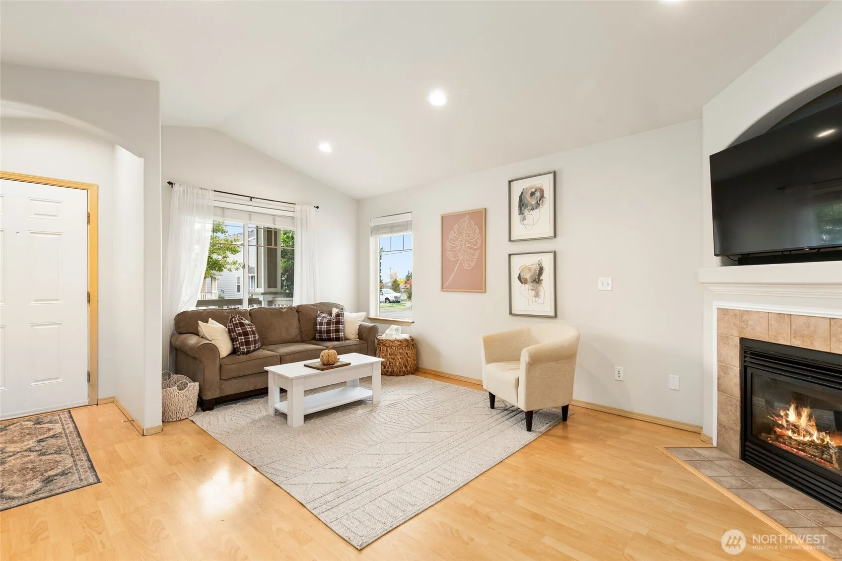 Charming 3bd/2ba light-filled rambler offers a spacious, airy feel. Vaulted living room features a cozy gas fireplace. Thru an archway is the vaulted dining area connected to kitch. The vaulted kitchen feels fresh & bright w/painted cabinets, updated hardware, has a pantry(!), newer stainless steel: sink, microwave, & range and peninsula: perfect for entertaining. Vaulted Primary Suite has a full bath & walk-in closet, while two additional bedrooms provide flexible space. The fenced yard offers low maintenance turf, patio, & room for a fire pit. Two-car tandem garage. Conveniently near restaurants, shopping, Hwy 2 & Hwy 9, (great commuter location). Feels bigger than ~1372sf. Move in ready with room to personalize.