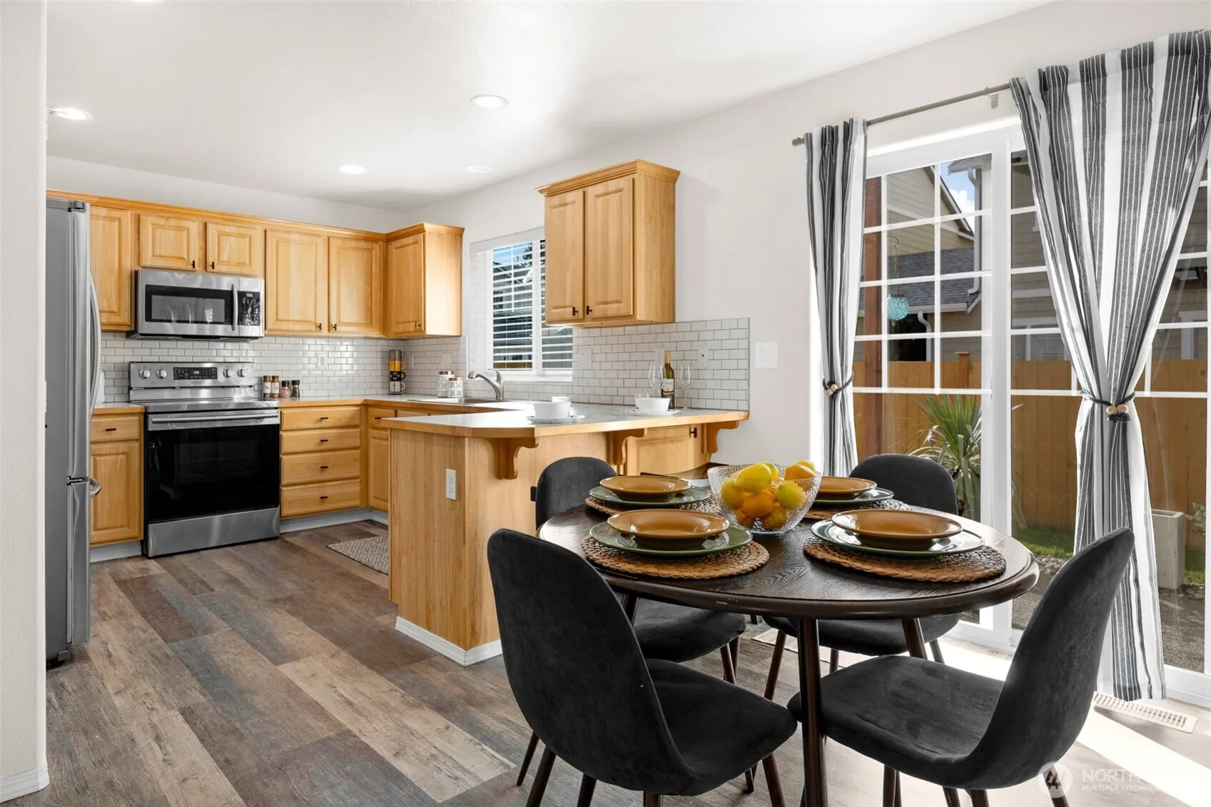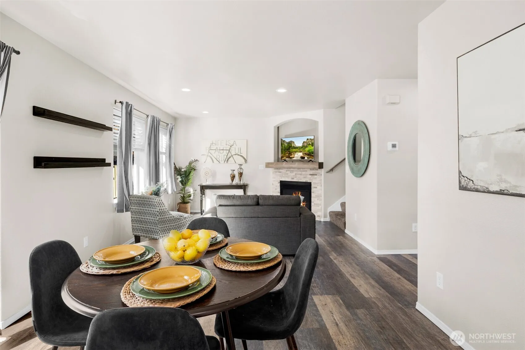 Move-in ready townhome w/upgrades! This 3-bed, 2.5-bath gem features a gorgeous kitchen w/stainless appliances that stay & new tile backsplash that opens to the dining nook & great room w/cozy gas fireplace & custom mantle. Enjoy year-round comfort w/the new heat pump & AC system! Well-maintained home w/quality flooring, carpet, interior paint & stainless appliances. Smart layout includes spacious primary suite w/walk-in closet PLUS convenient upstairs laundry. Relax in your private fenced backyard w/territorial views. End-unit location offers extra privacy. Minutes to I-5, shopping, dining, coffee & park-&-ride. Appliances stay, including fridge & washer/Dryer! Roomy 2 car garage! This Arlington beauty won’t last—schedule your showing now!