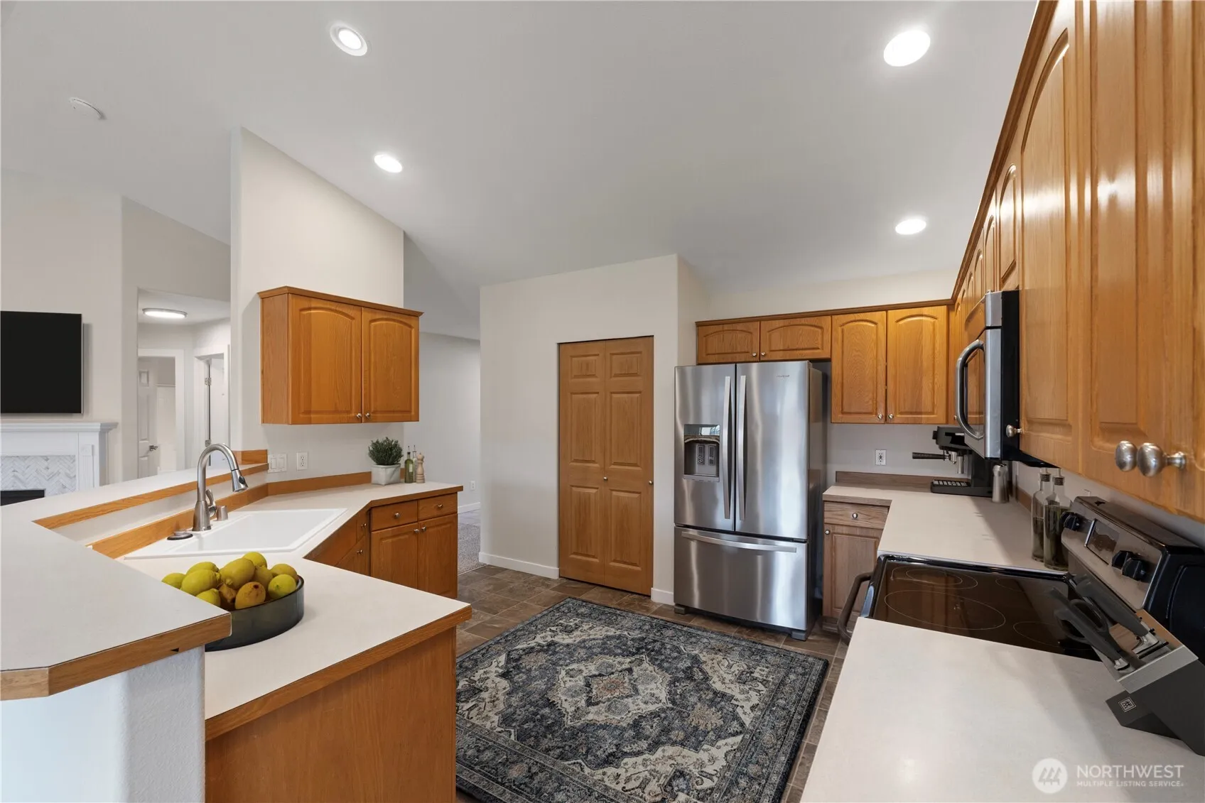 Welcome to Willow Brook, one of Bonney Lake’s most sought-after neighborhoods! This adorable rambler is move-in ready with a brand-new roof, fresh interior paint, new trim, carpet, & stylish modern hardware throughout. The home offers a bright open kitchen with plenty of counter space and all appliances included. Enjoy vaulted ceilings in the family room, a cozy tiled gas fireplace, and a large primary suite with a walk-in closet and full bath. The level, fully fenced backyard features a patio, sprinklers, and mature landscaping—perfect for relaxing or entertaining. Stay comfortable year-round with central A/C. Surrounded by walking trails and close to commuter routes & shopping, this home blends convenience, charm, & comfort. Welcome home!