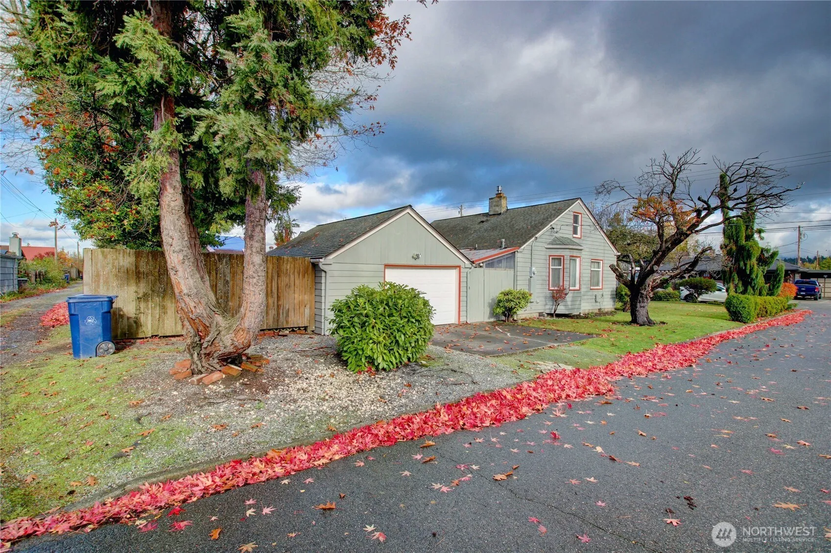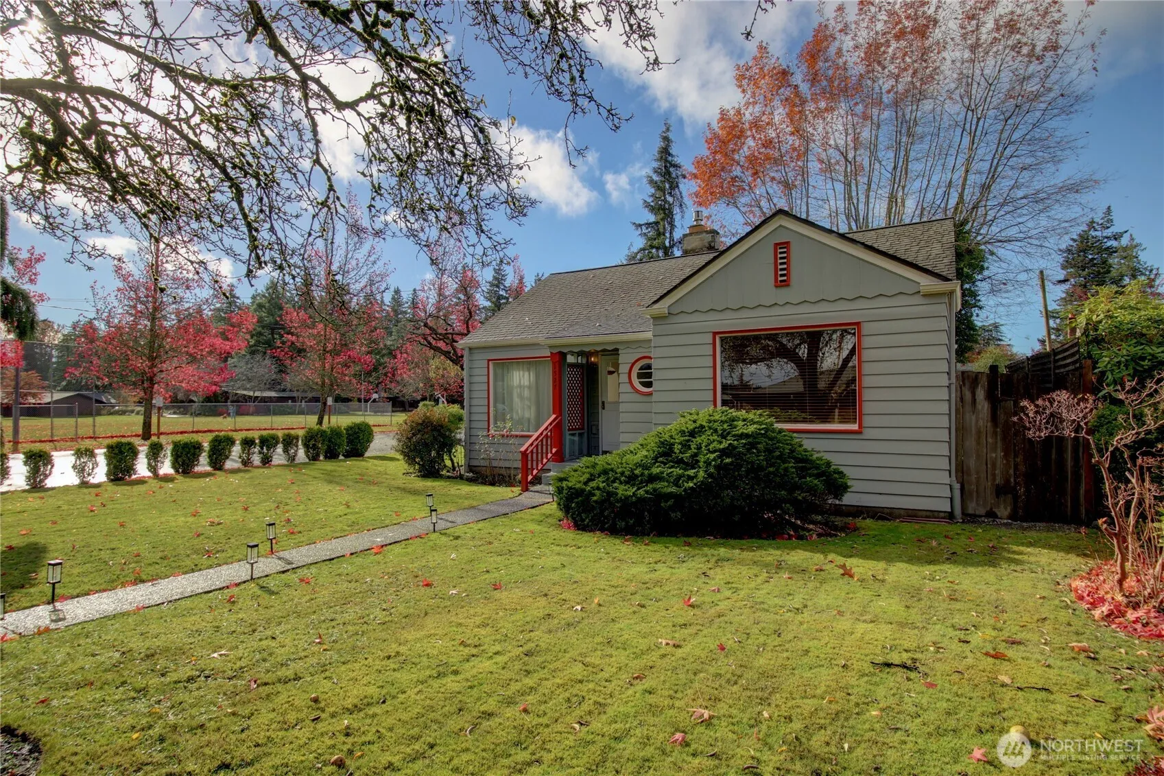 Charming 1940 bungalow across from Hillcrest Park. Coved ceilings, large windows, and fresh interior paint make this home bright and move-in ready. Enjoy one-level living with an extra bedroom upstairs for guests or hobbies. Discover the hidden hardwoods in main floor bedrooms, a rare Frigidaire Flair stove, original glass doorknobs and more. Private covered patio area and a fully fenced backyard extend your outdoor time. Move in ready but space for quick equity too. A detached garage offers both parking and workspace, new exterior/ interior paint and electrical rewire in 2019. Enjoy the pickleball, basketball, playgrounds and trails across the street at Hillcrest Park. Easy and close access to I-5, hospital, schools and downtown.