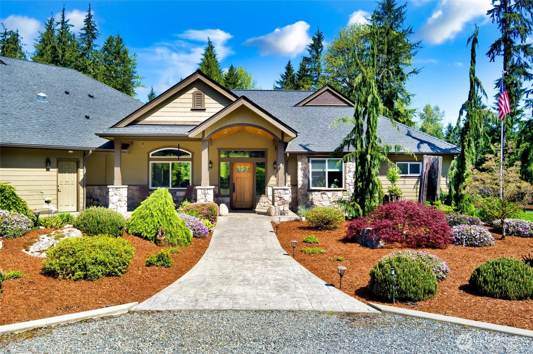 Experience elegant entertaining on 5 private acres near Woodinville wine country. The gated drive opens to a circular court with a tranquil water feature and entryway that sets the tone for sophistication. Inside, dramatic beam ceilings, a stone fireplace, and acacia floors create a warm, inviting ambiance. The gourmet kitchen with Sub-Zero and Wolf appliances inspires every culinary creation. Amazing upstairs surround sound theatre area. Step outdoors to a covered outdoor kitchen, water feature, and stamped patio all designed for gatherings. A Generac backup generator system, huge detached shop, and 42’ motorhome garage complete this exceptional property.