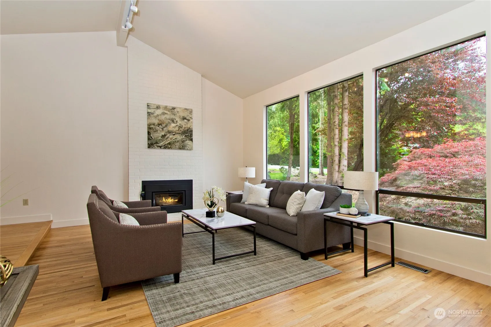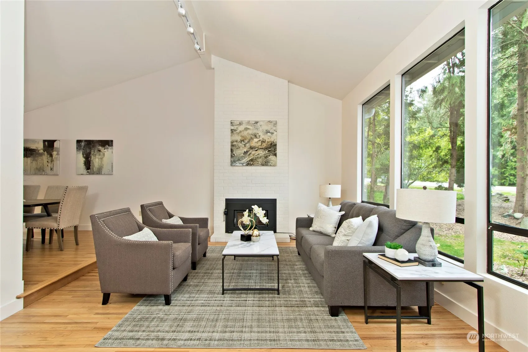Nestled in the tranquil Woods at Issaquah on Squak Mountain, this elegant 4-bedroom, 2.25-bathroom home offers comfort and style. A covered walkway opens to interiors with hardwood floors, vaulted ceilings, and a fireplace. Large windows illuminate the main floor, while the dining room and kitchen, featuring an eat-in nook, overlook a spacious deck and private backyard—ideal for outdoor entertainment. Upstairs, find three bedrooms, a full bath, and a primary suite with dual closets and an ensuite. The lower level houses a versatile family room, utility room, and half bath. Recent updates include fresh paint, solar panels, and extensive parking for boats or RVs, making this home a perfect blend of modern amenities and natural surroundings.