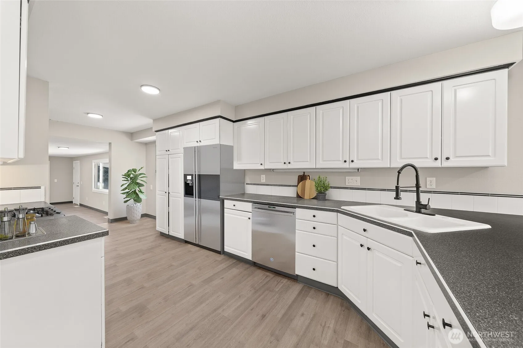 Escape the grind of the city with this fully remodeled 4 bedroom, 2 bathroom home with a 4-car garage on an oversized corner lot. The main floor features a large kitchen with new stainless-steel appliances, dining room with a cozy fireplace, spacious living room, 2 bedrooms, 2 bathrooms, and main floor laundry. Walk upstairs and find an additional 2 bedrooms and living room/rec room. Walk outside and enjoy the spacious oversized lot which is perfect for entertaining friends. Other features include forced air heat and central A/C. Conveniently located close to Lake Roosevelt, schools, and the Harrington golf course with easy access to the freeway.