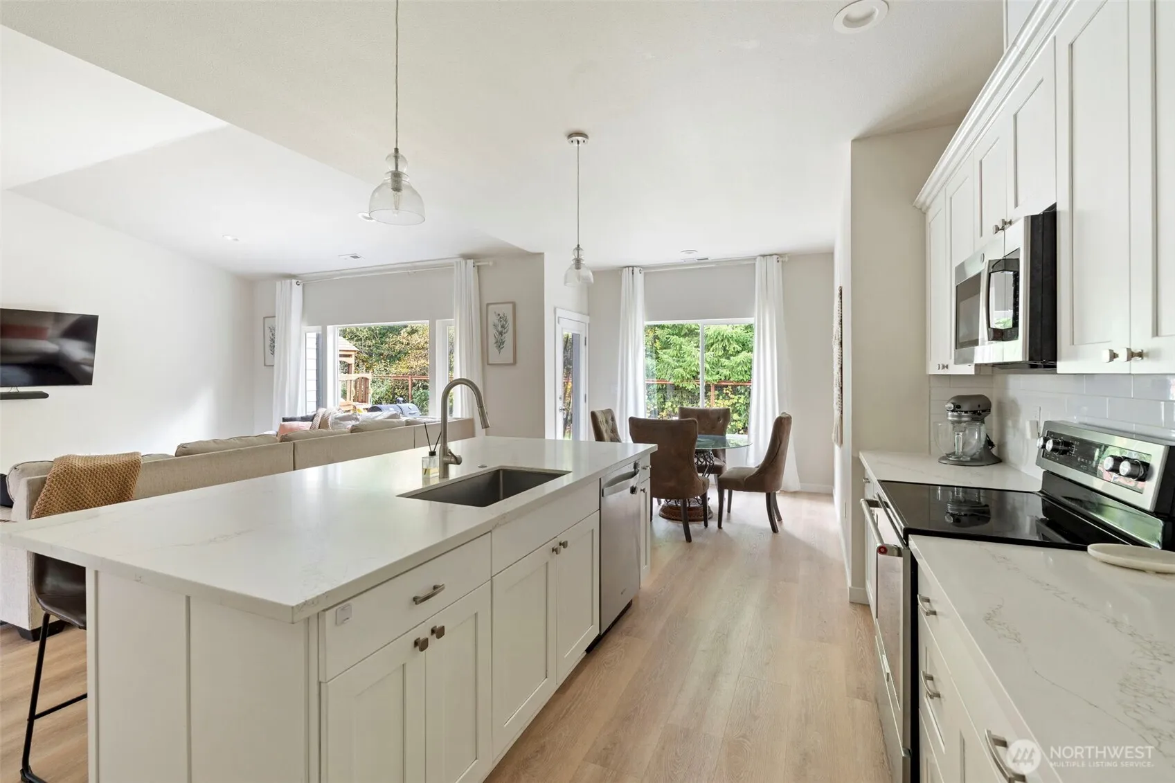 Experience modern comfort and timeless style in this beautifully designed McCleary home. The open floor plan features vaulted ceilings, rich hardwood floors, and a seamless flow between the living, dining, and kitchen areas. The chef’s kitchen is complete with quartz countertops, stainless steel appliances, and a large island perfect for entertaining. Enjoy a spacious primary suite with a luxurious 5-piece bath and walk-in closet. Outside, the covered patio and fully fenced yard create an ideal space for relaxing or hosting guests. A 3-car Tandem garage provides ample storage, and the location offers easy access to Hwy 8 for a quick commute to Olympia or the coast.