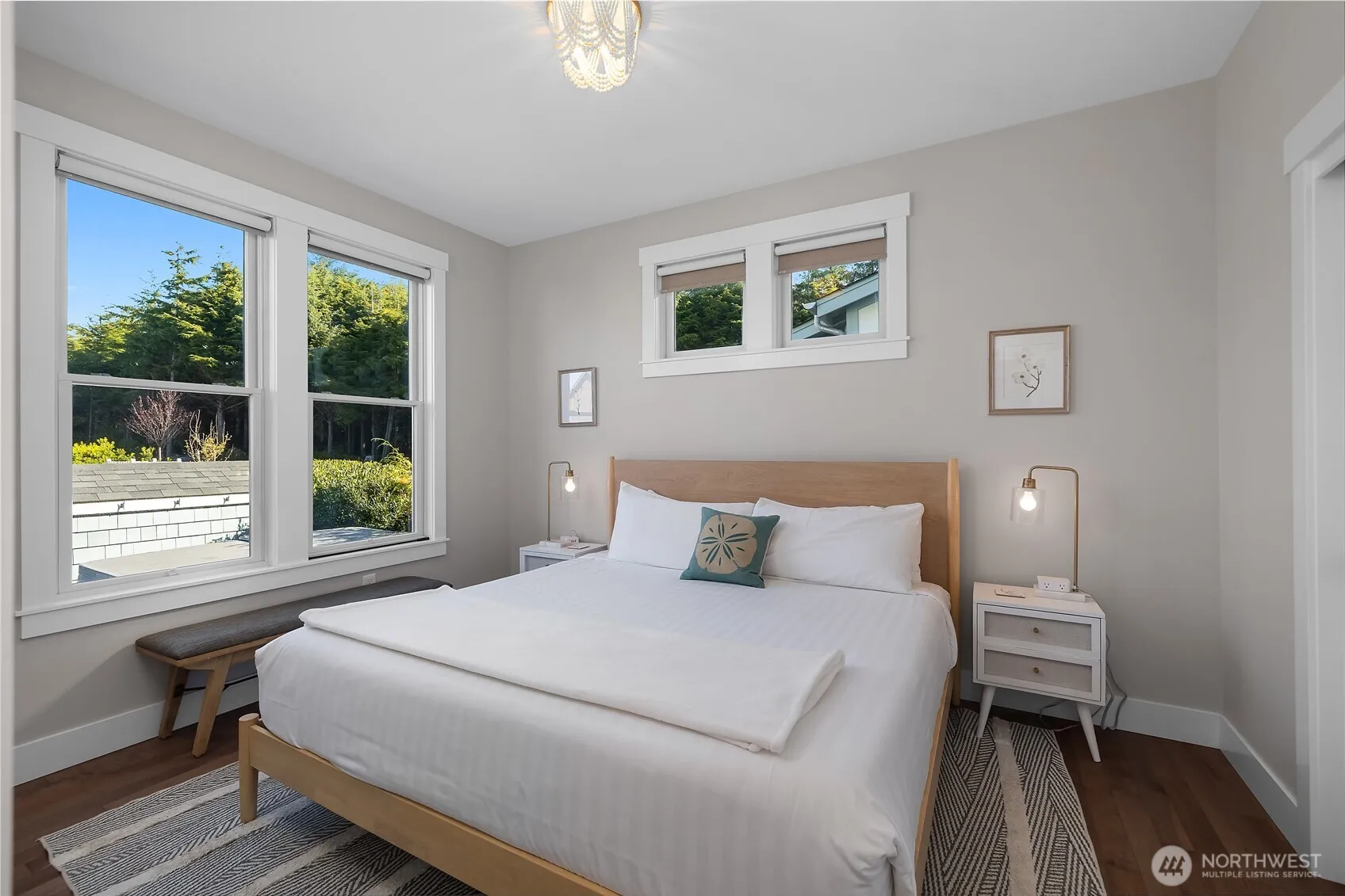 Welcome to Dogwood Cottage, a serene, fully furnished retreat named after the native Pacific Northwest Dogwood tree. Nestled in one of Seabrook’s most peaceful neighborhoods, this home invites relaxation on its sunny, south-facing porch with Polywood rocking chairs, an outdoor dining table, and views of a wooded ravine with ocean sounds. The backyard features Adirondack chairs by a Solo Stove and a private hot tub. Inside, soothing blues and greens extend the natural beauty indoors. The ground floor has a bedroom with a walk-in shower. Upstairs, find two more bedrooms, media room, and desks for remote work, plus two expansive owner’s storage areas. Dogwood Cottage is a short walk from the outdoor pool, gym, and Fernwood neighborhood.